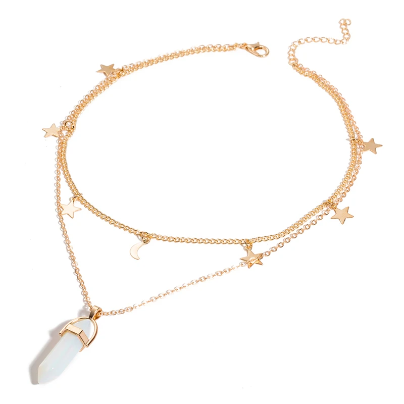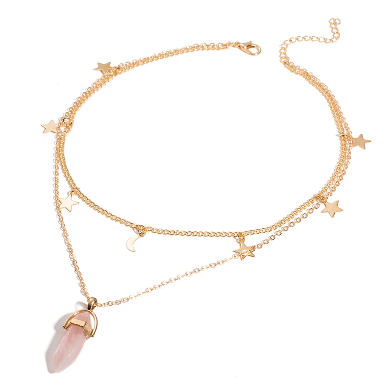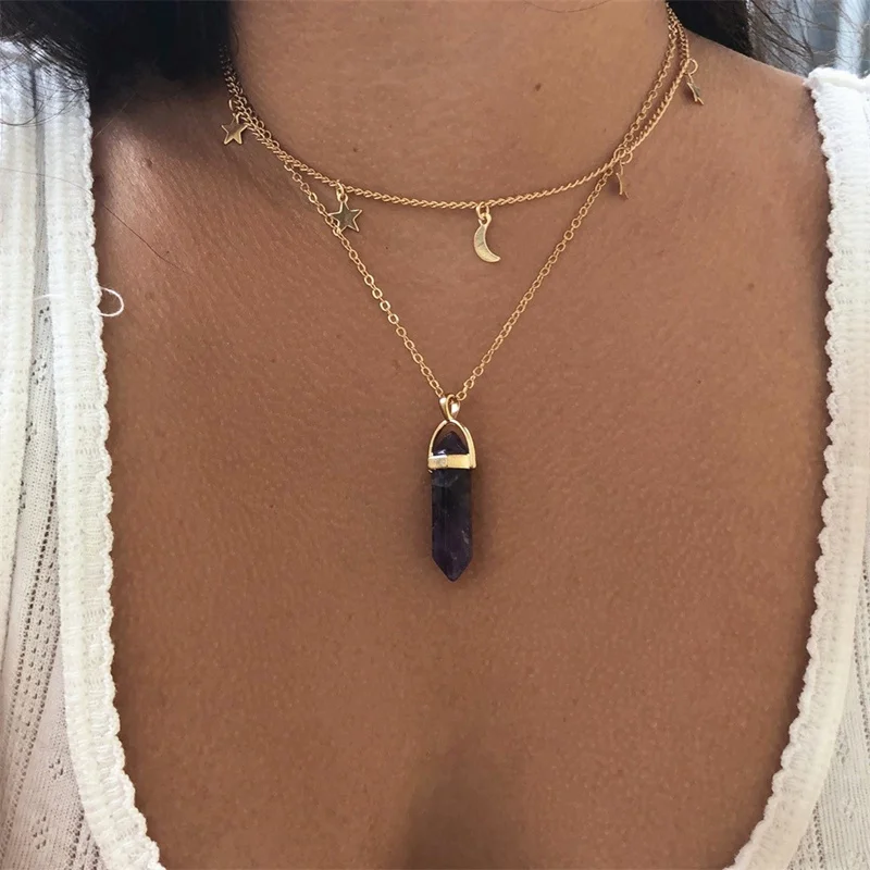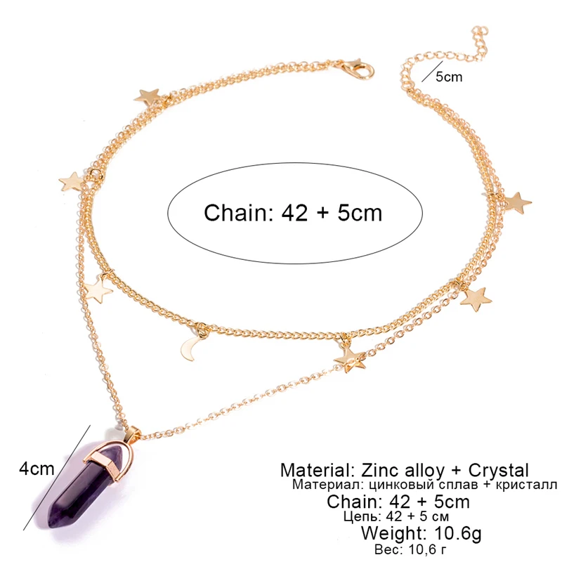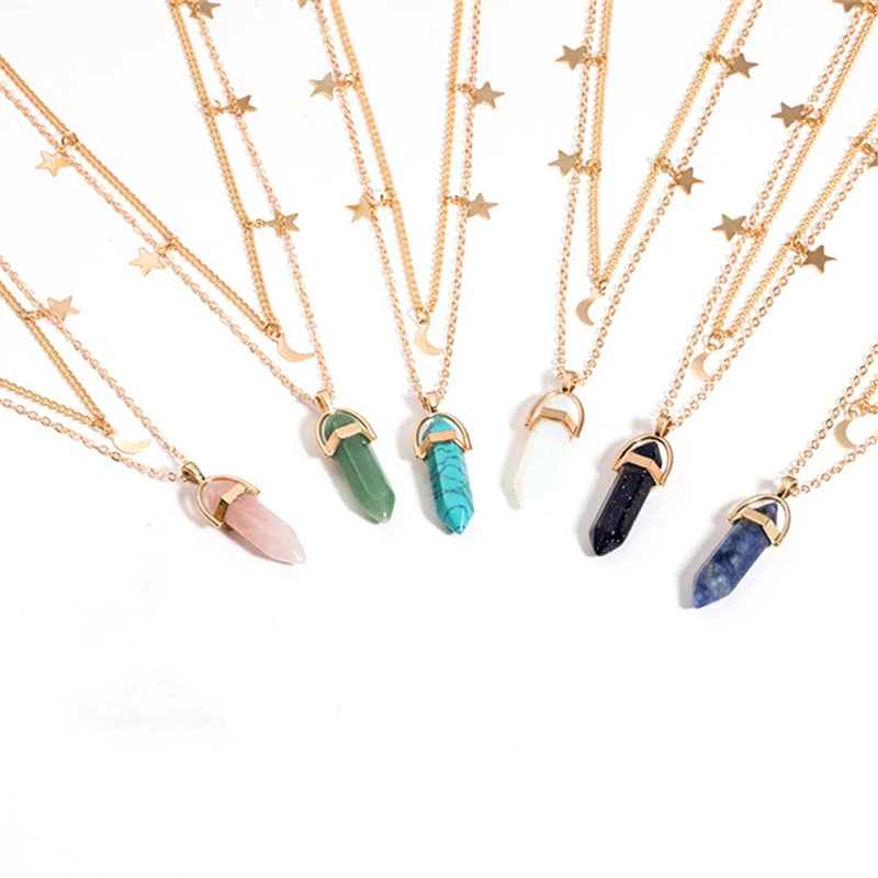 Simple Star Moon Choker Necklace Natural Stone Hexagonal Column Necklaces Pendants Bullet Crystal Necklace Women Jewelry
