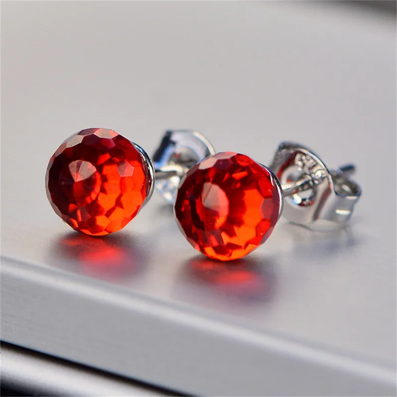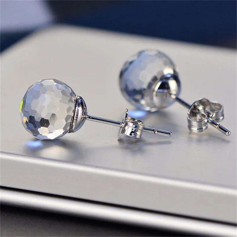 Simple Stud Earrings For Women 100% Sterling S925 Silver Needles Transparent Cubic Zirconia Fine Jewelry Prevent Allergy