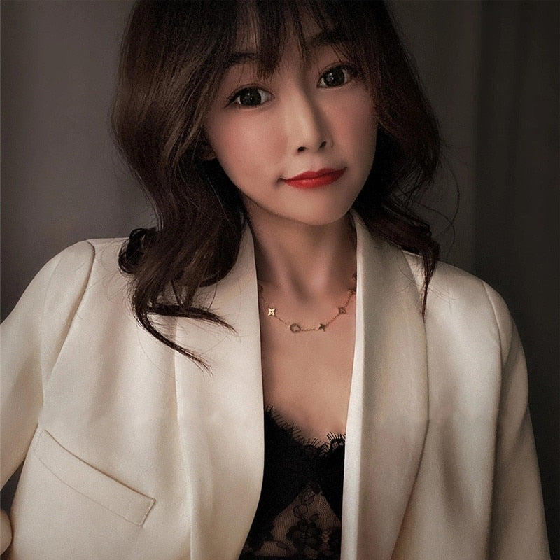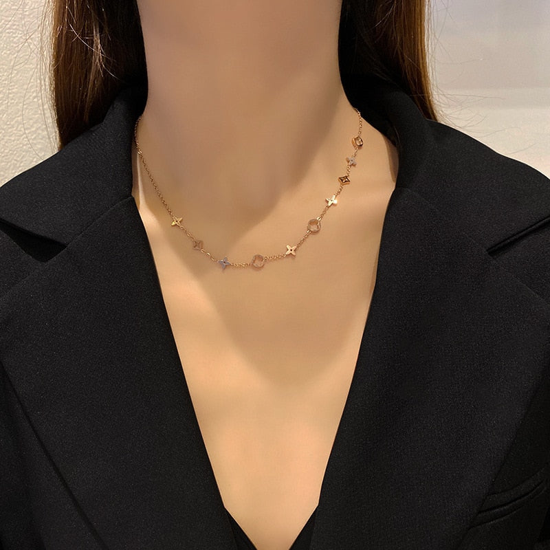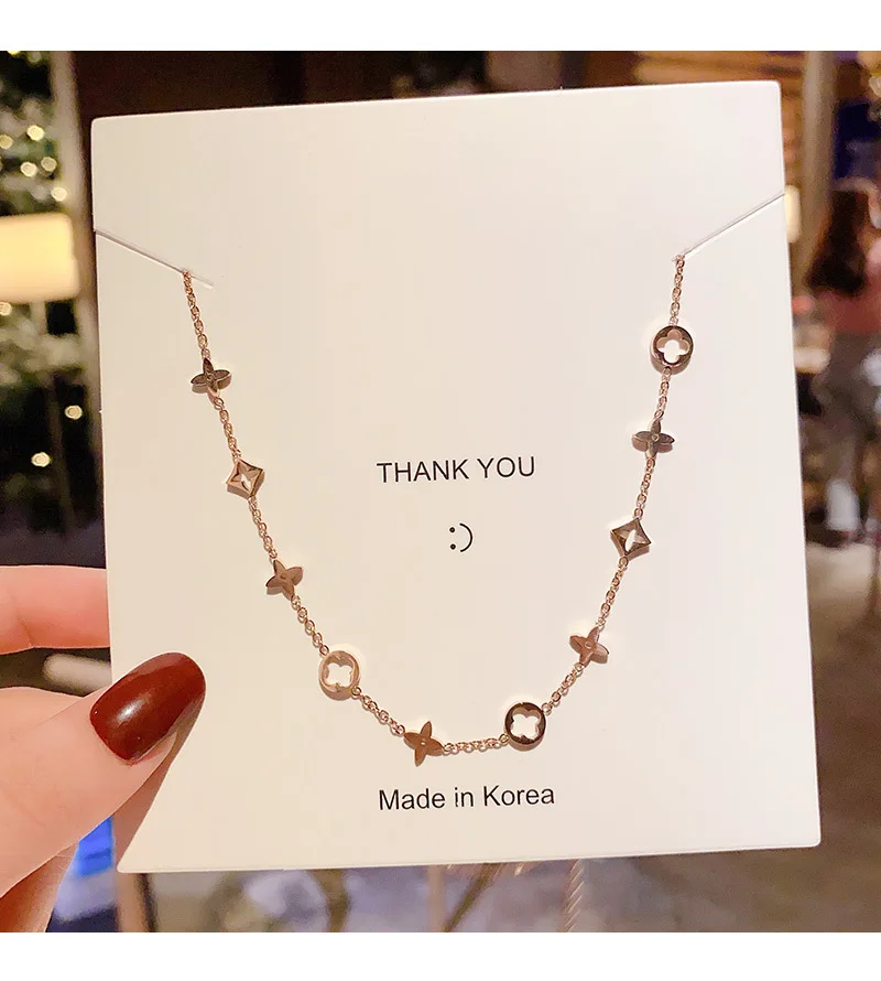 simple temperament web celebrity light titanium steel lucky grass necklace female collarbone chain