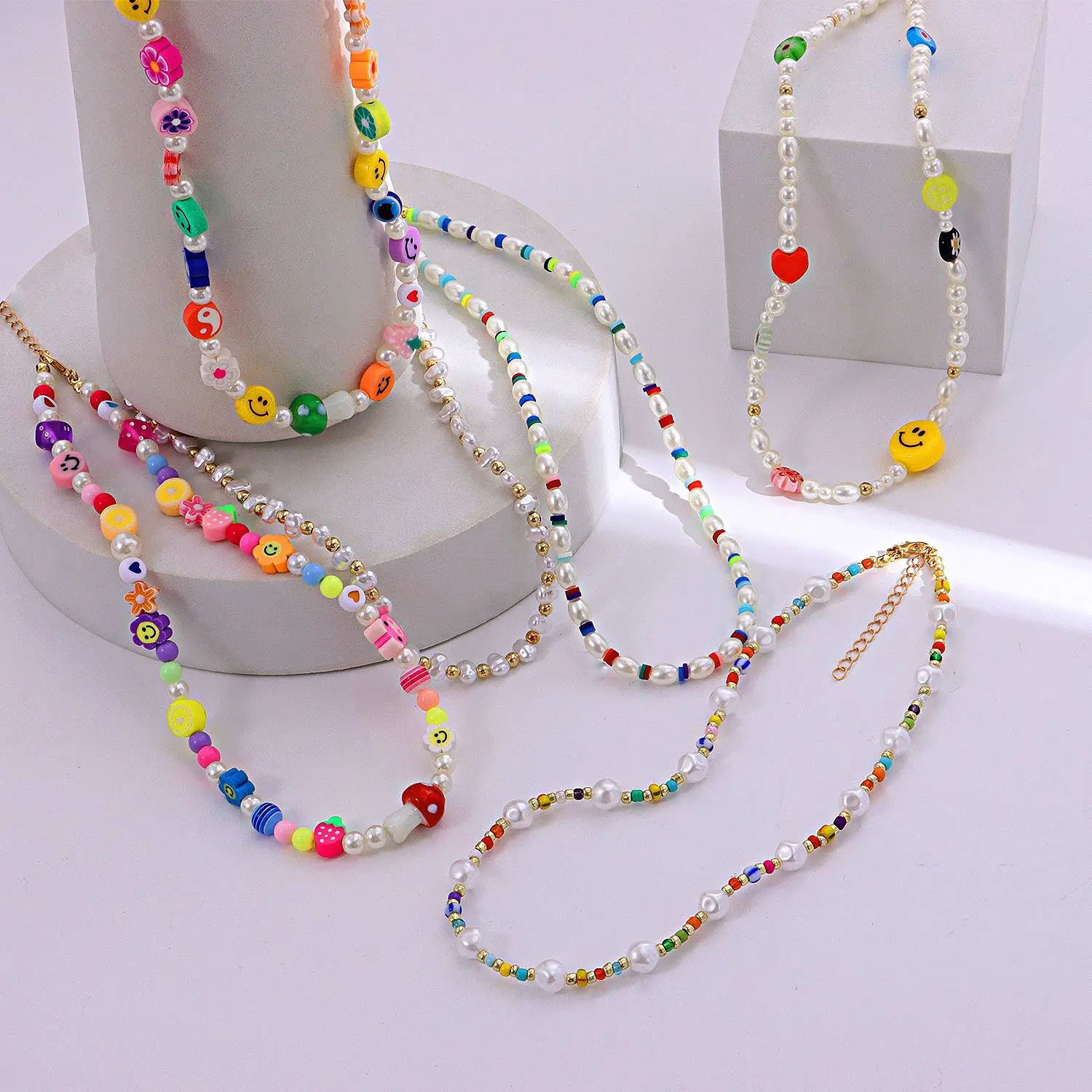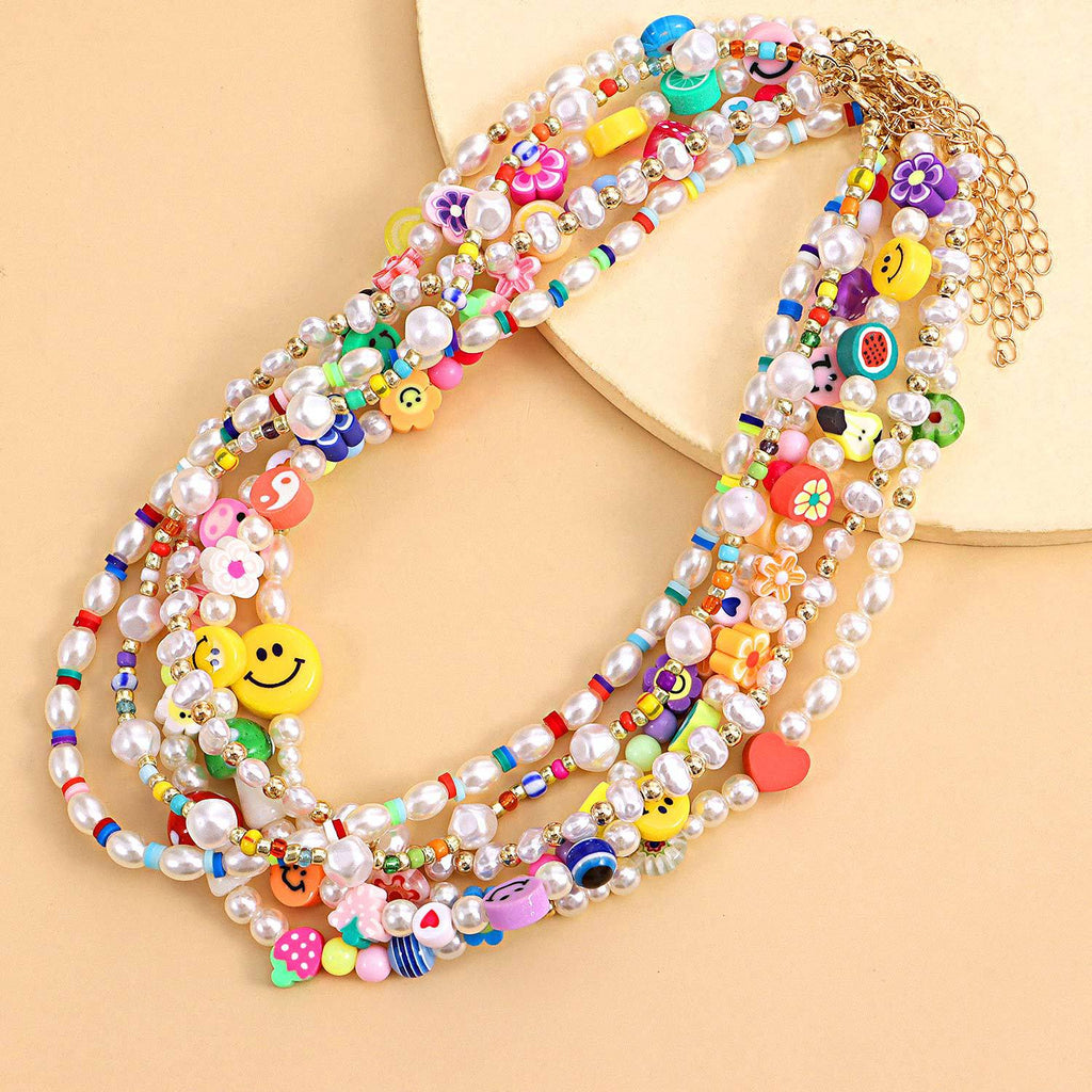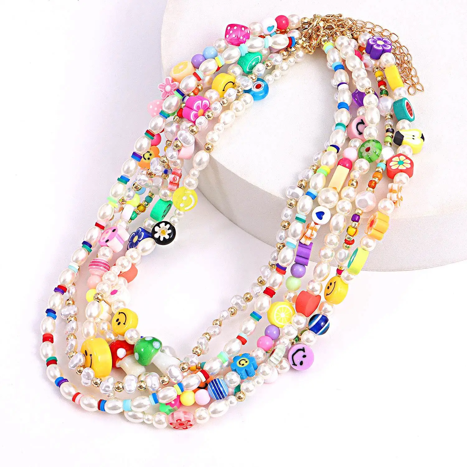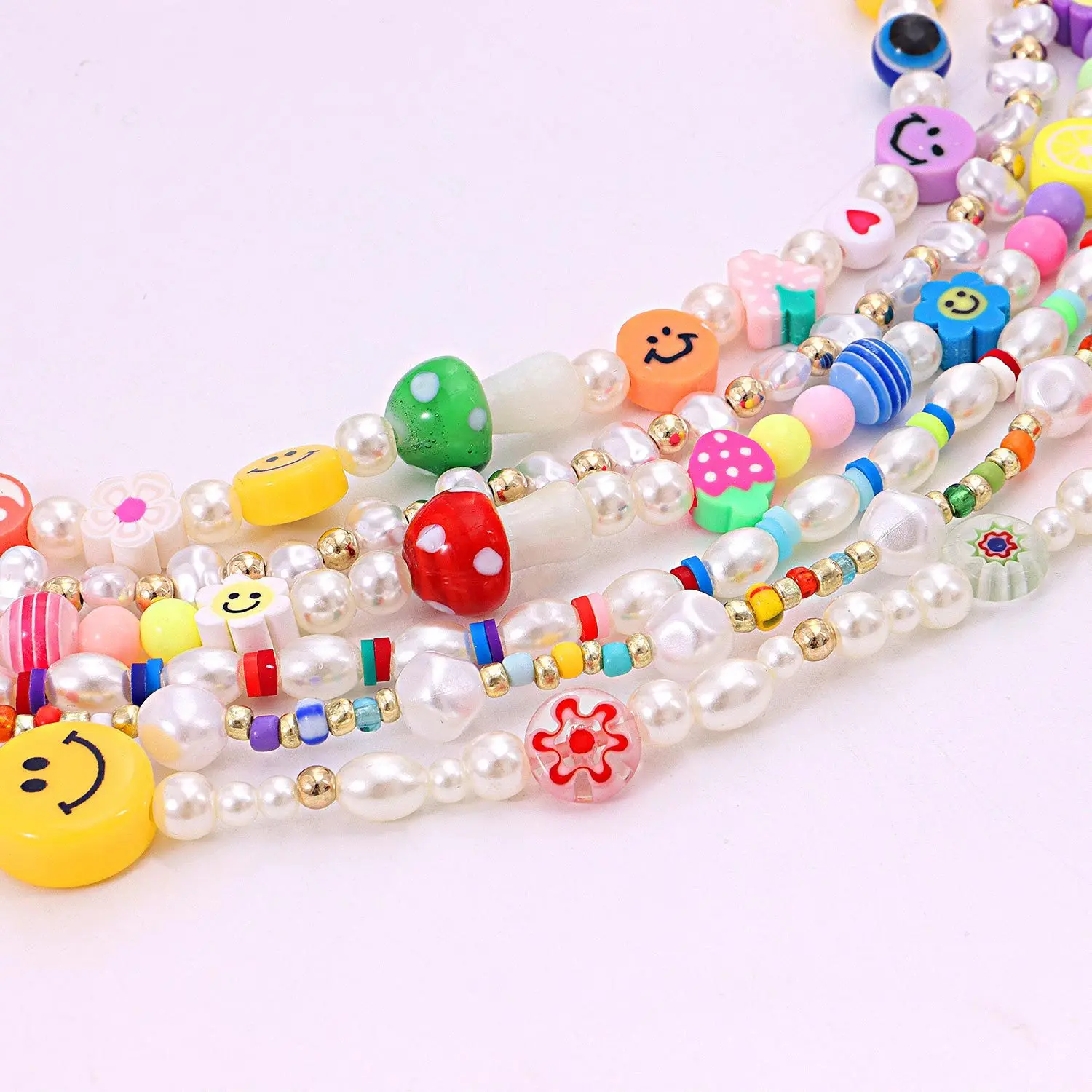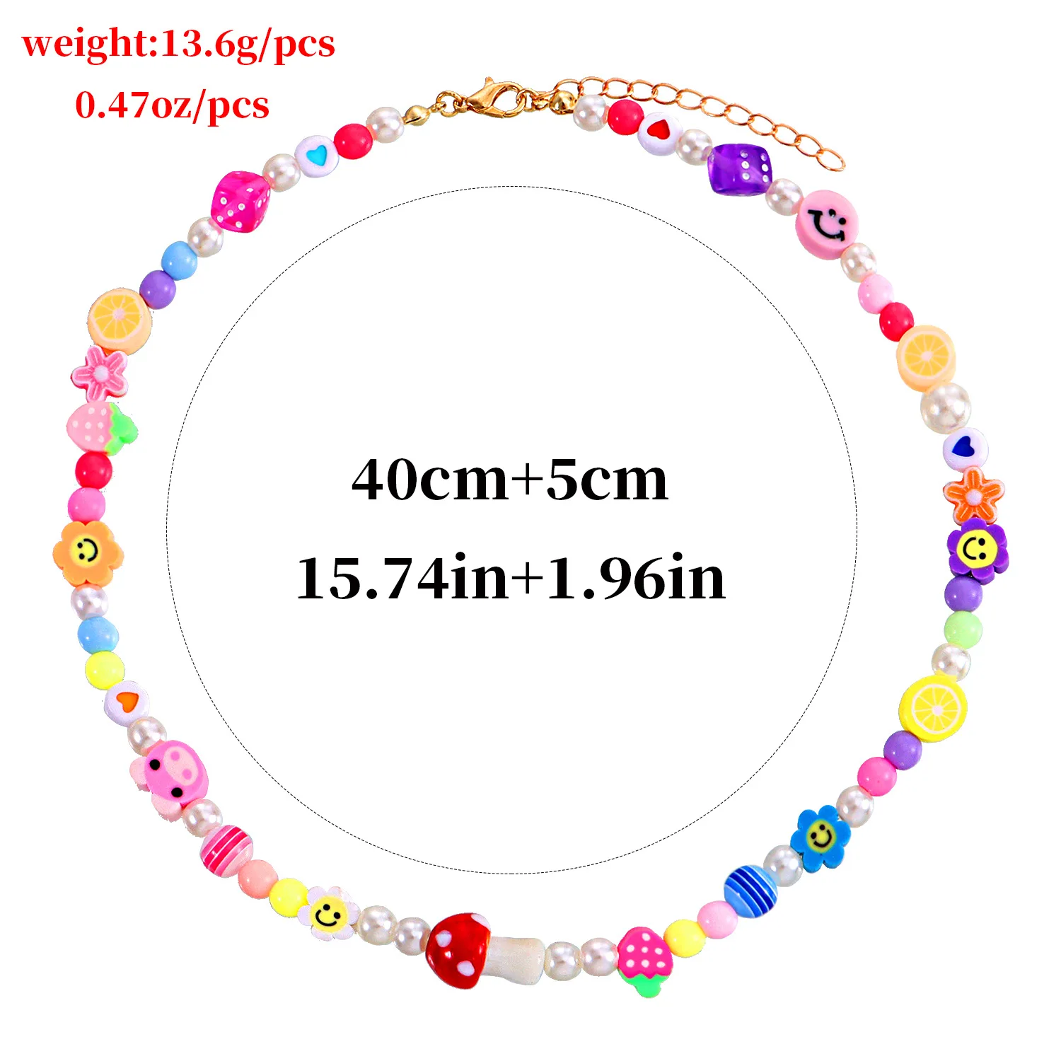 Simulated Pearl Fruit Choker Necklace For Women Bohemian Simple Face Flower Bead Short Collar Beach Gift
