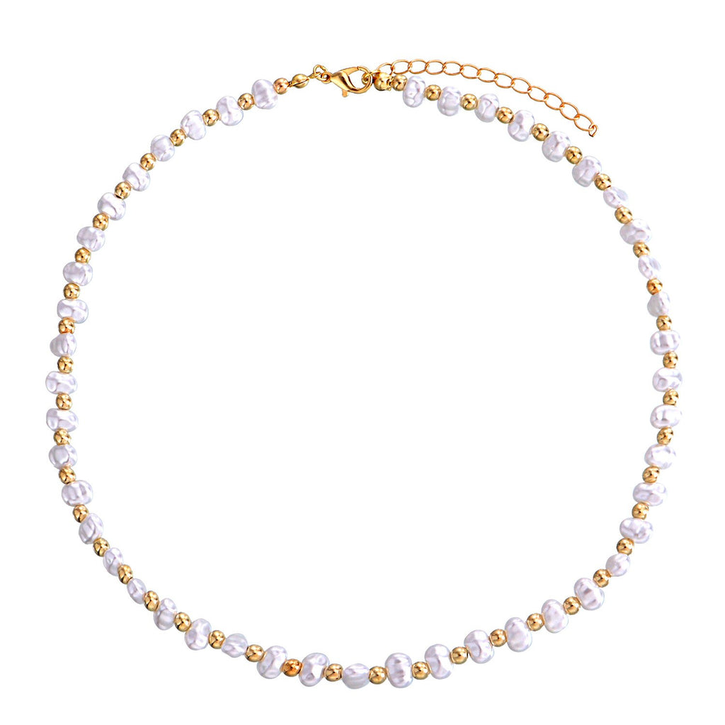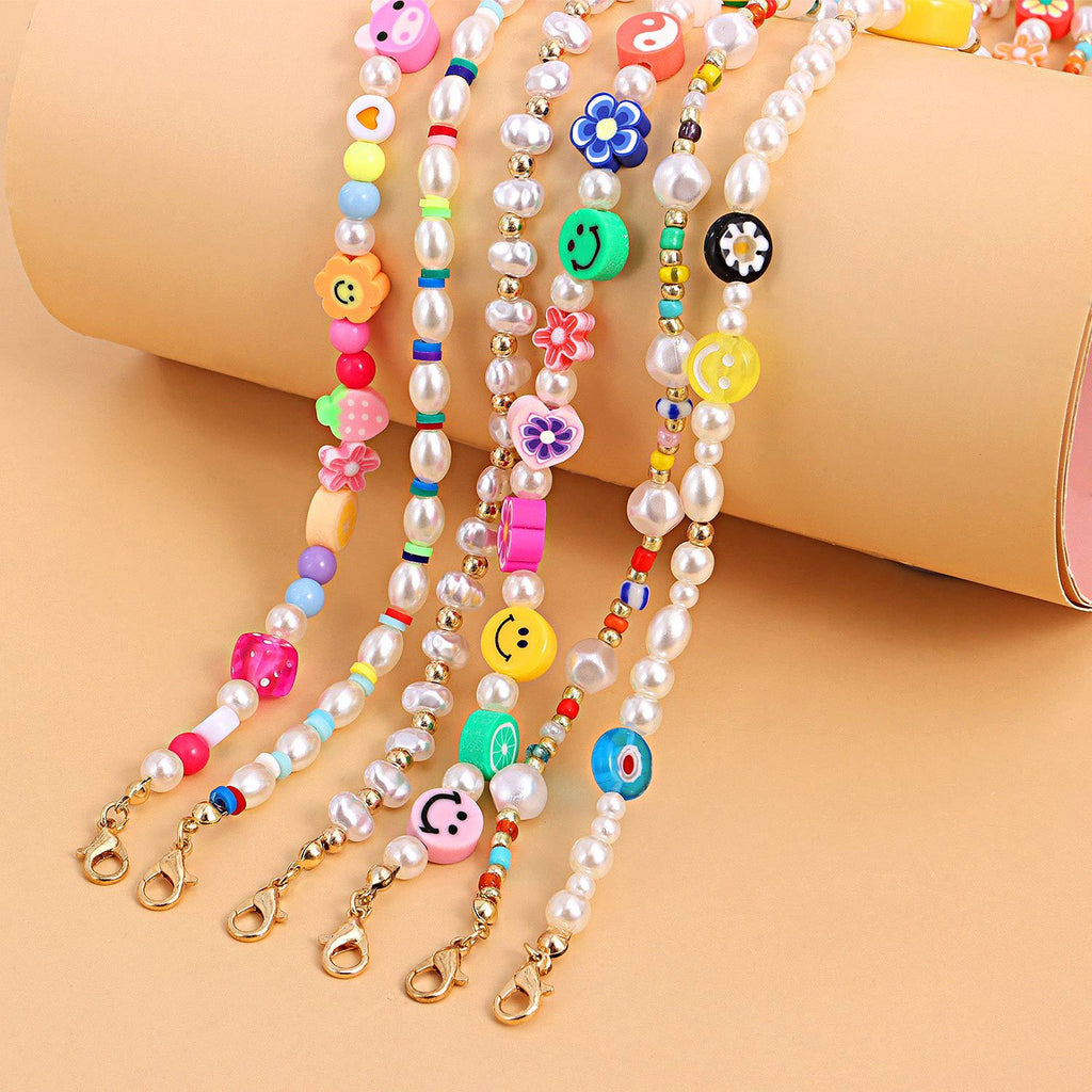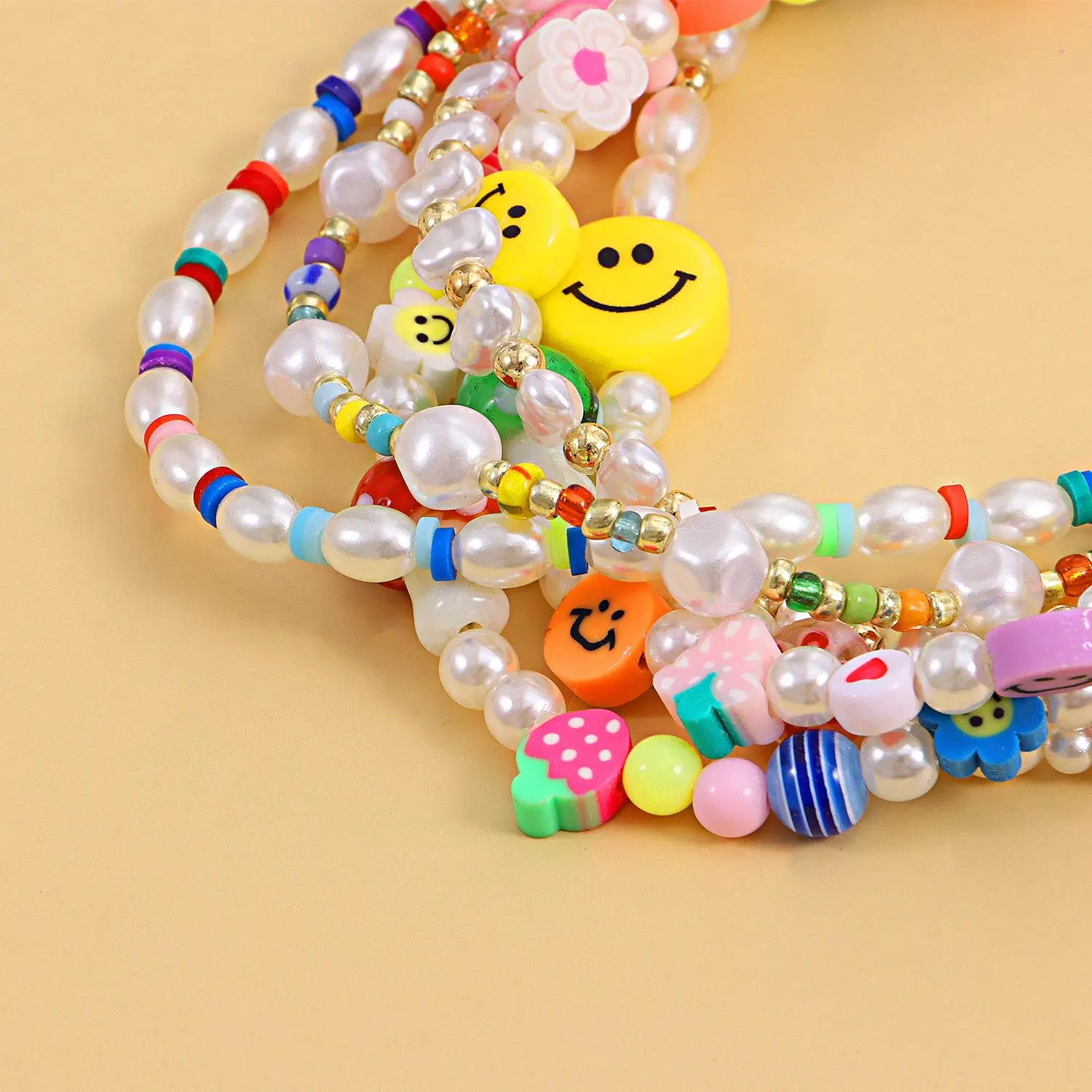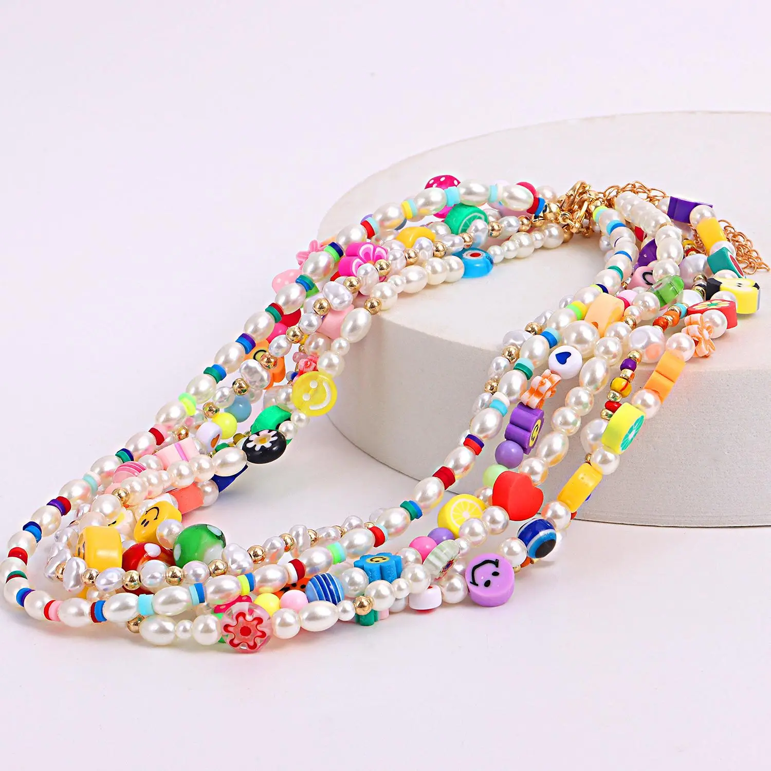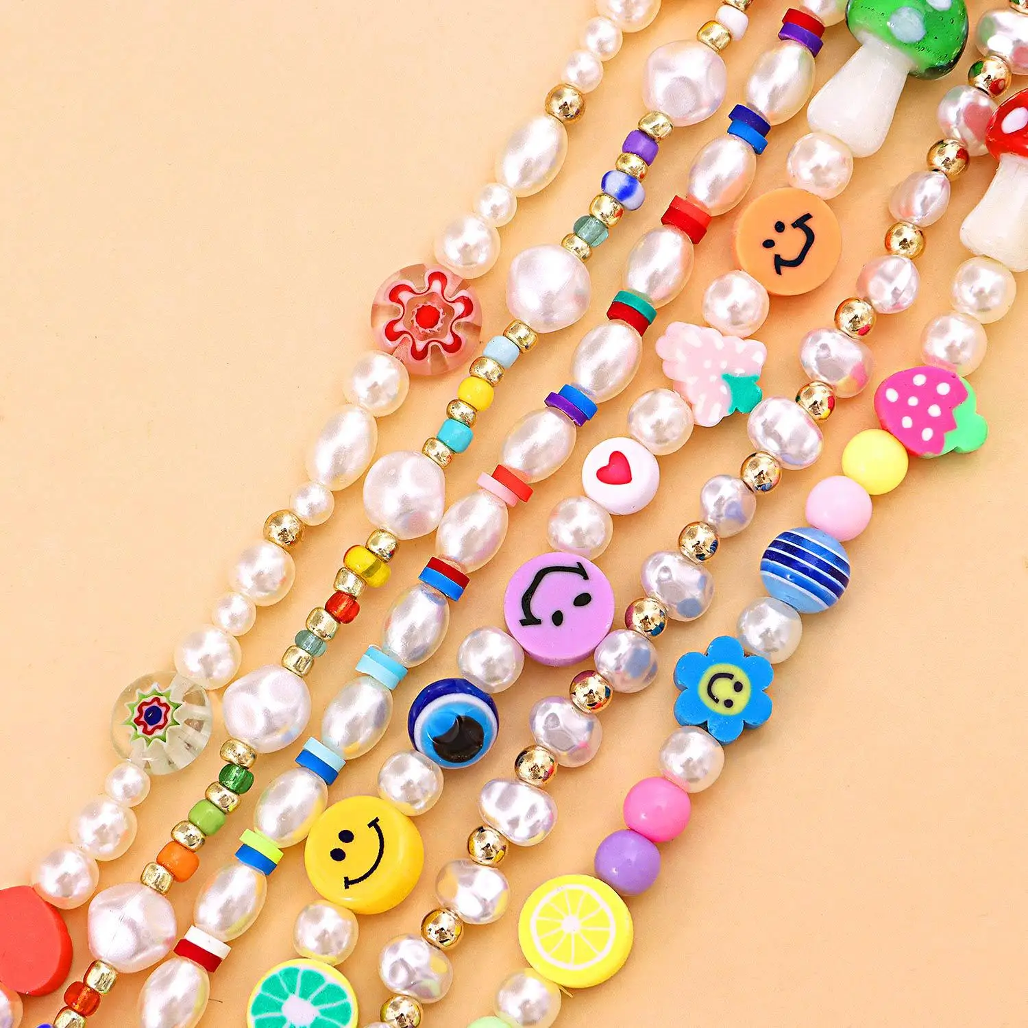 Simulated Pearl Fruit Choker Necklace For Women Bohemian Simple Face Flower Bead Short Collar Beach Gift
