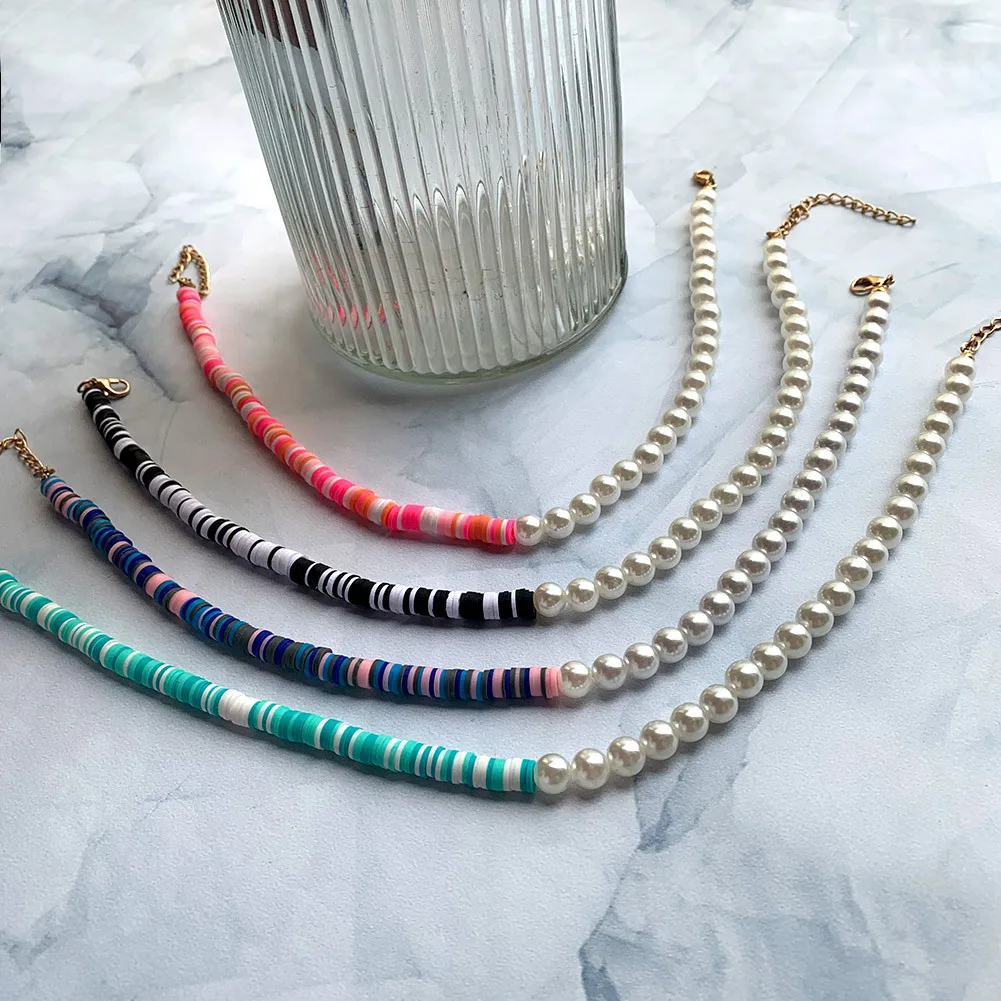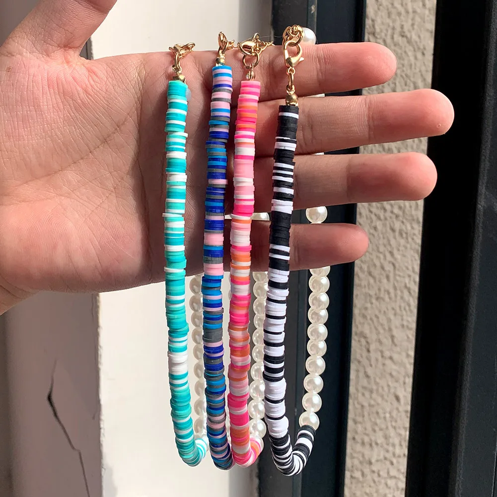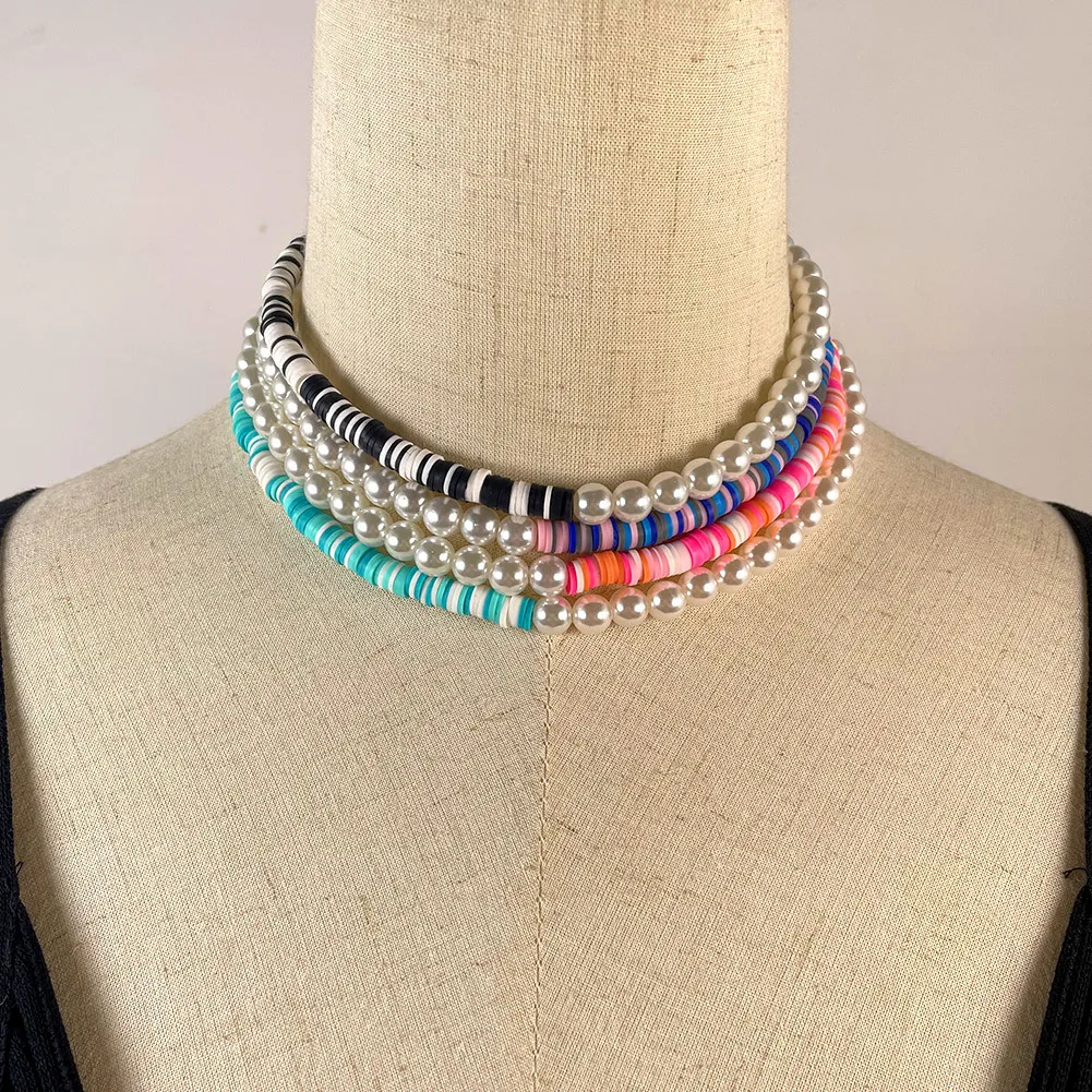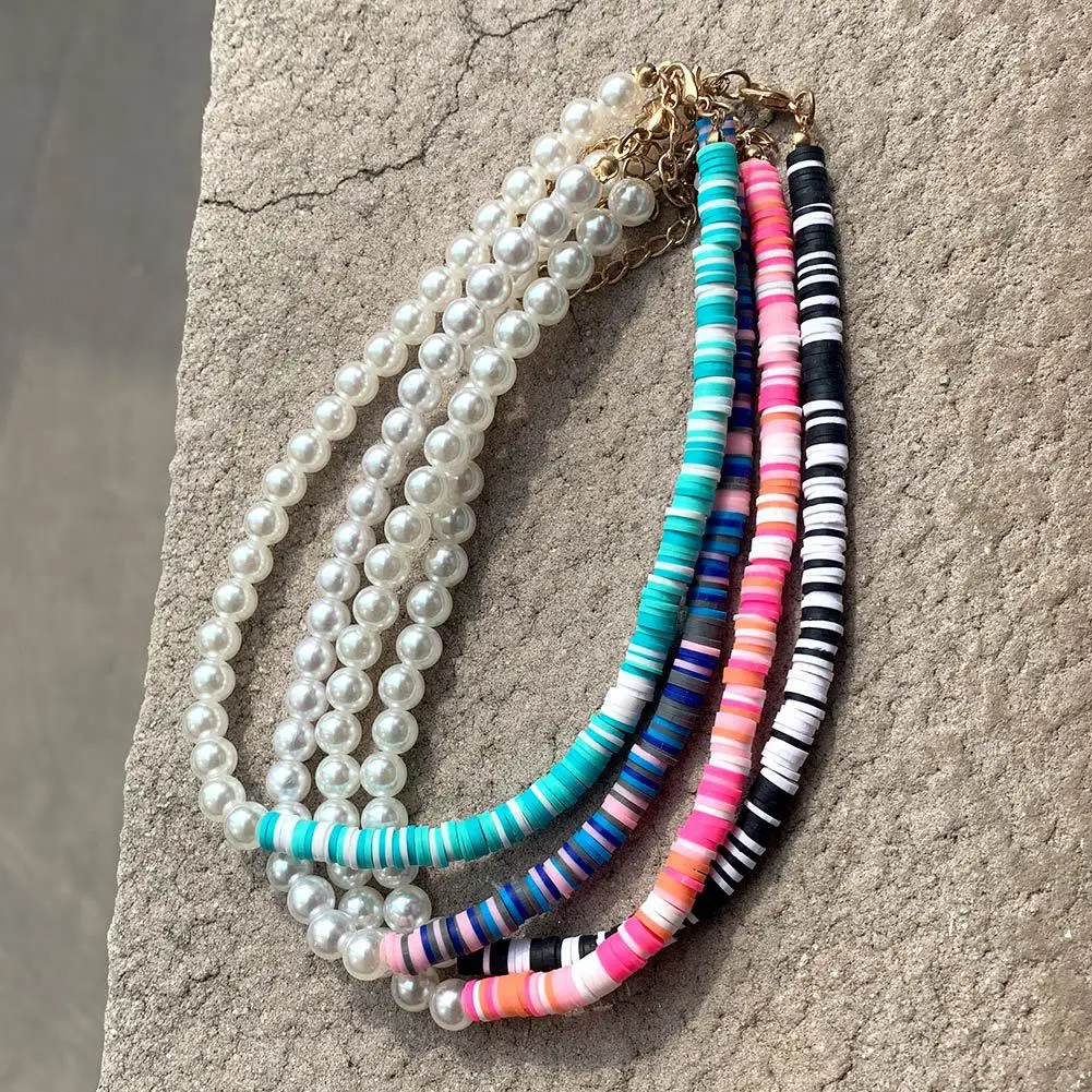 Simulated Pearl Polymer Clay Necklace Soft Pottery Choker Colorful Surfer Bead Collar Handmade Femme Jewelry Gift