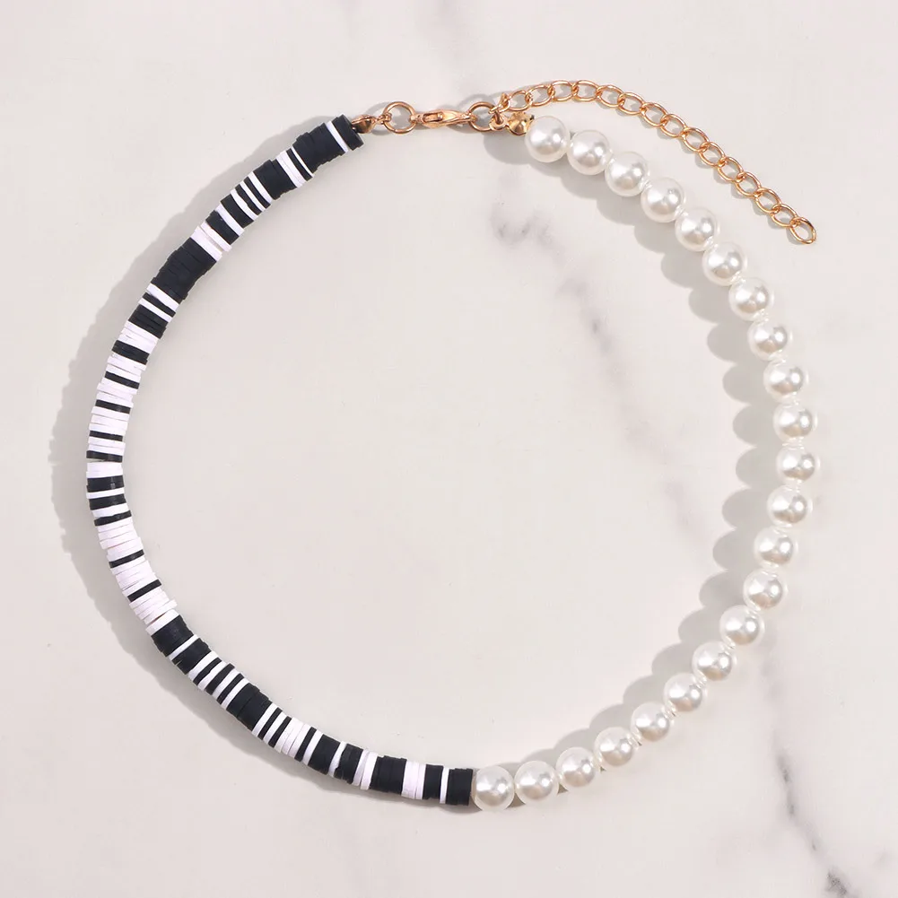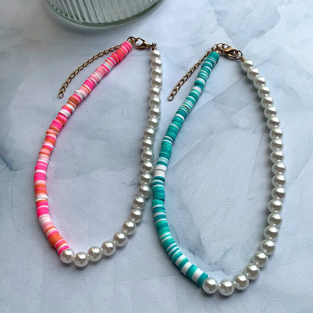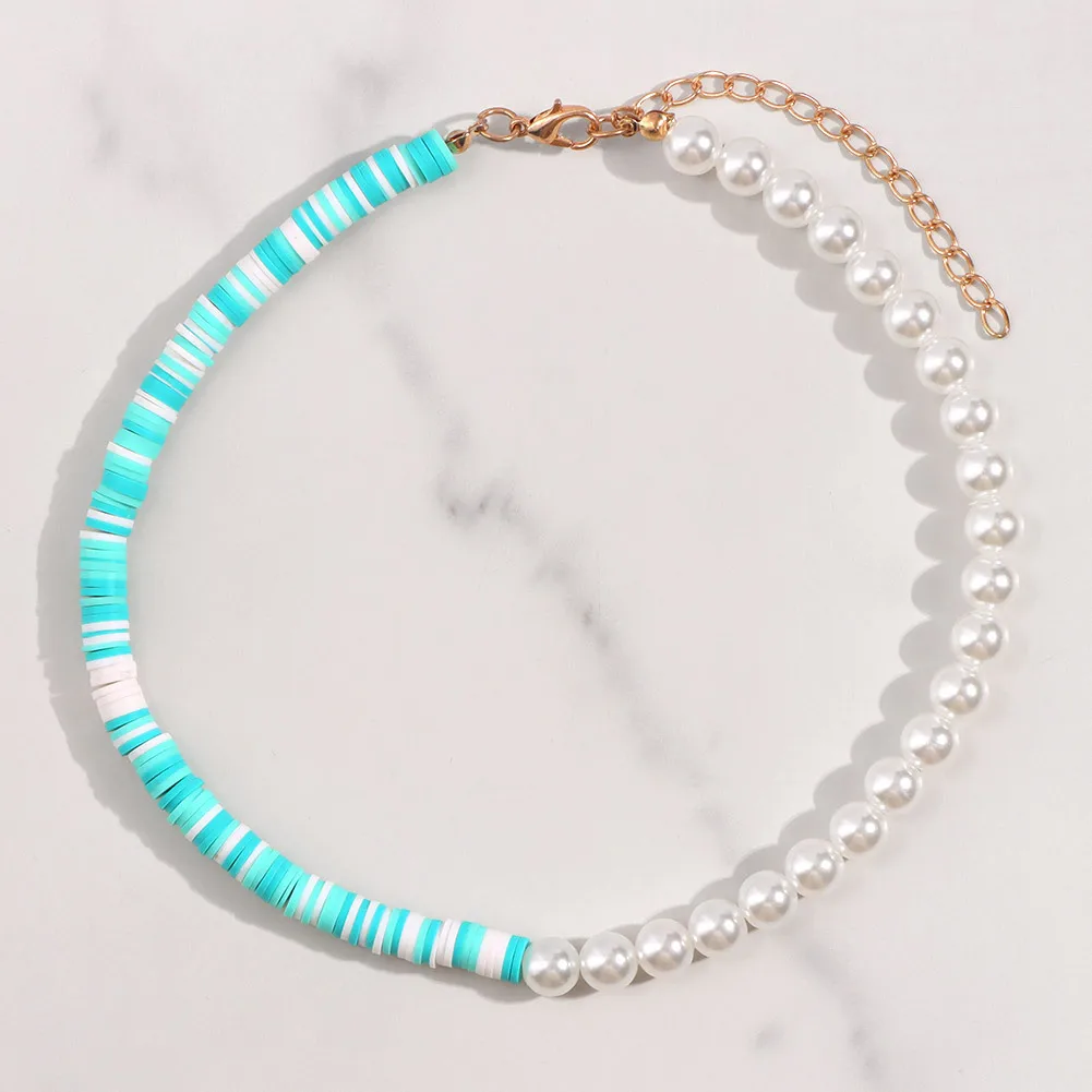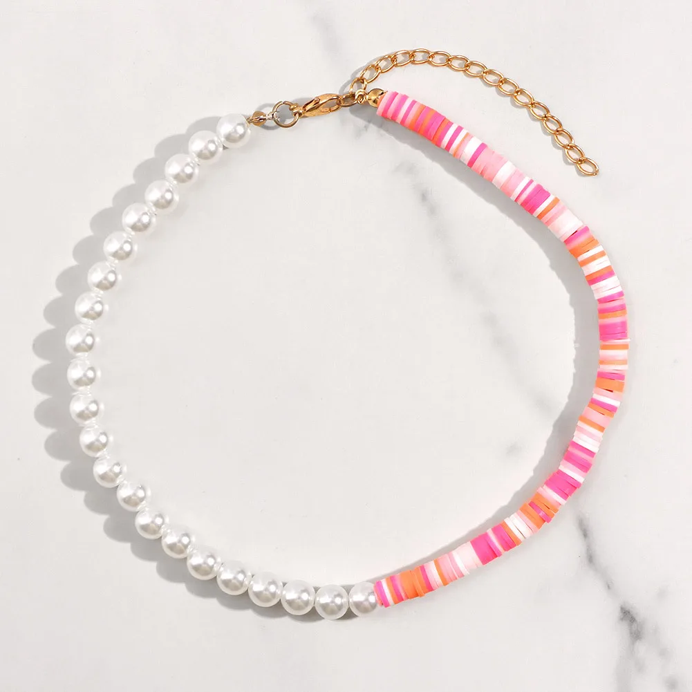 Simulated Pearl Polymer Clay Necklace Soft Pottery Choker Colorful Surfer Bead Collar Handmade Femme Jewelry Gift