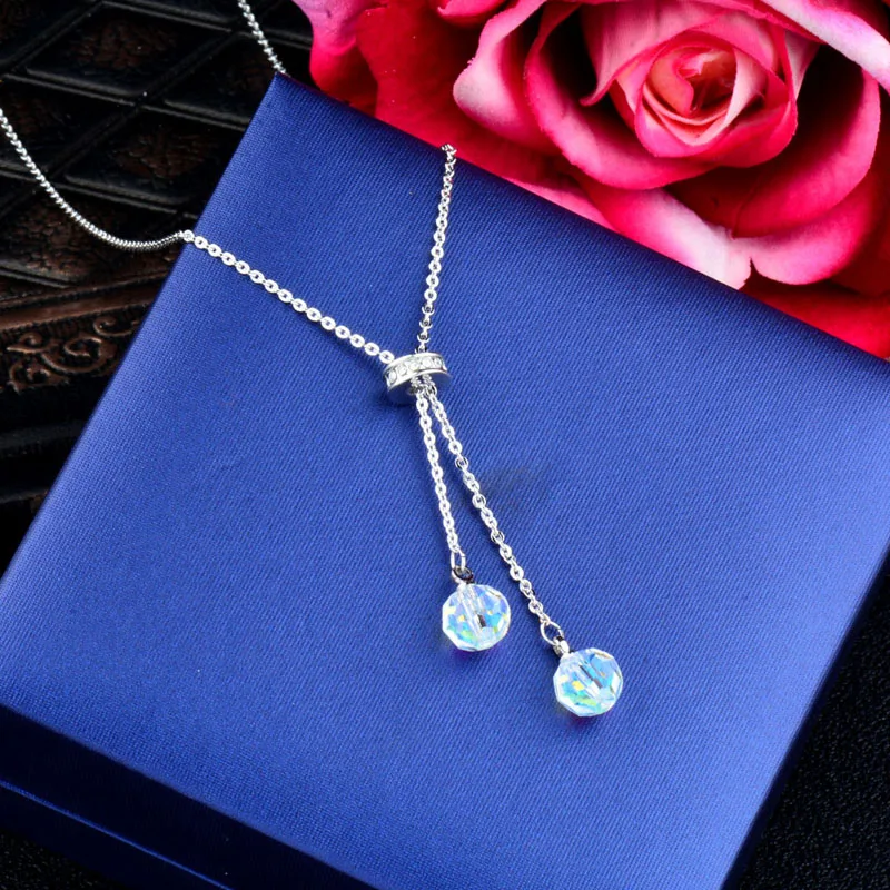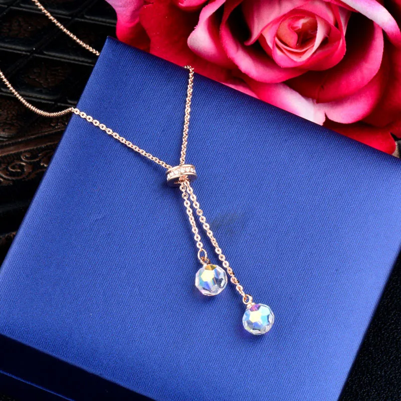 SINLEERY Cubic Zirconia Ball Pendants and necklaces Rose Gold Silver Color Necklace For Women jewelry accessories XL198 SSP