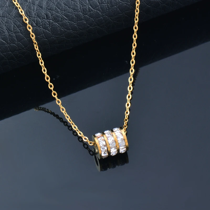 SINLEERY Stainless Steel Necklace Cubic Zirconi Circle Pendant Charm Rose Gold Wedding Necklace For Women Gift boho XL396 SSK