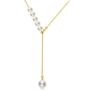 18k Gold unique Innovation version Y necklace threaded up 5 pcs round pearl and 1 pearl pendant Multiple ways of wearing
