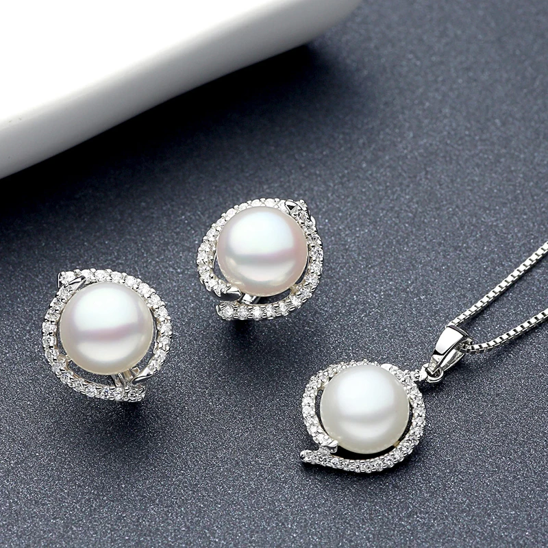9-11mm natural pearls silver earring pendant necklace or jewelry set optional for women mother in 925 sterling silver