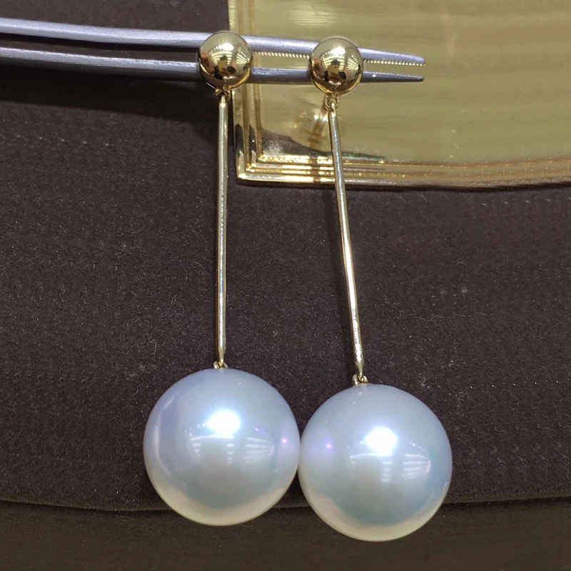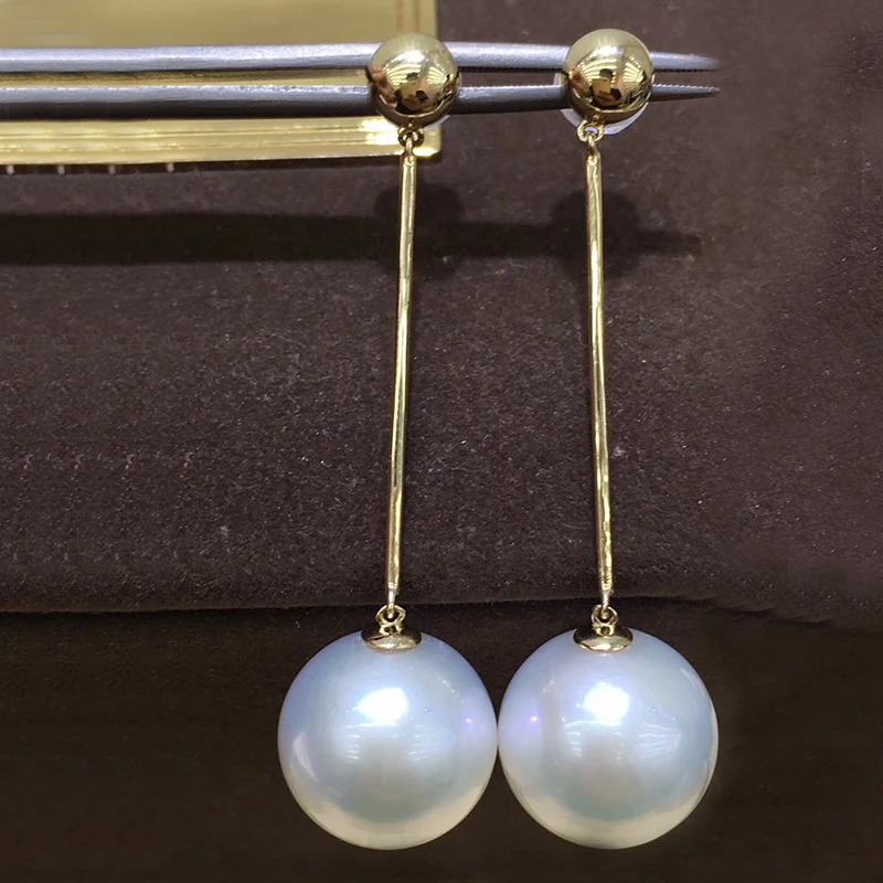 Very High luster 13-14mm Edison pearls Drop long chain earring in 14k gold for women Mum girls lover festival gift best