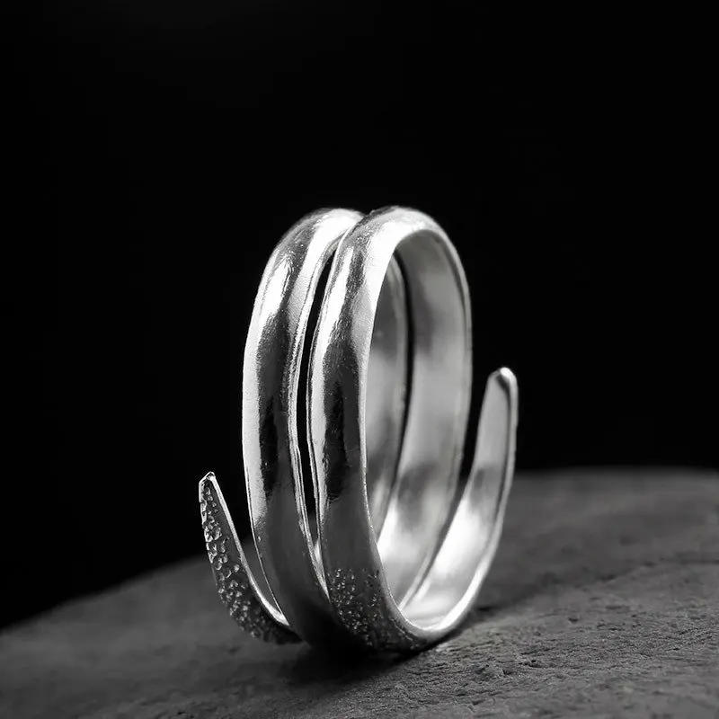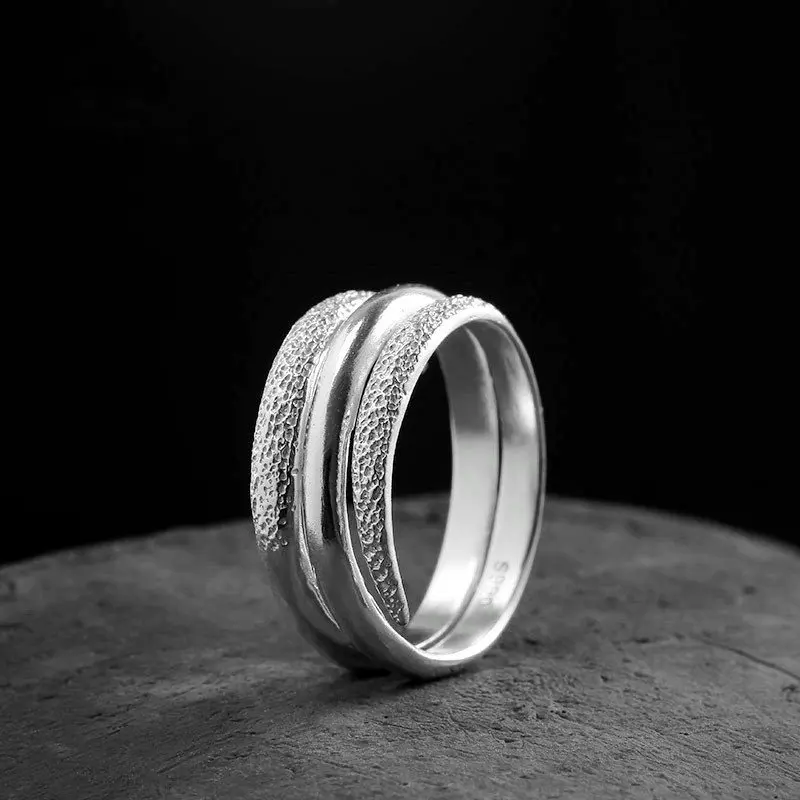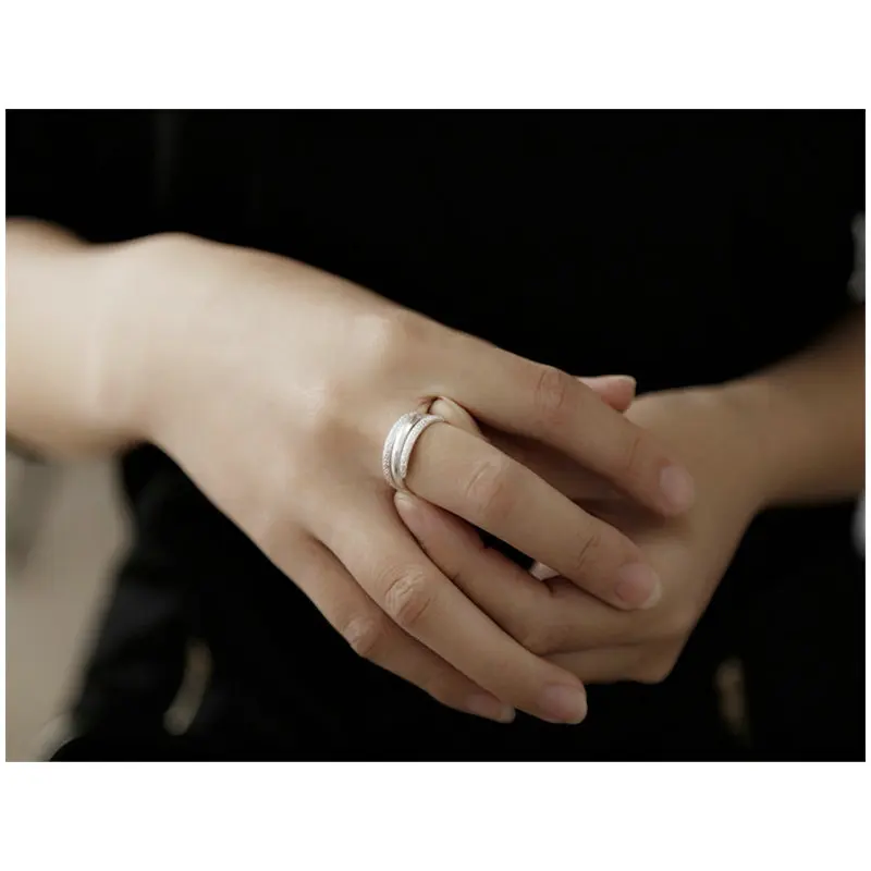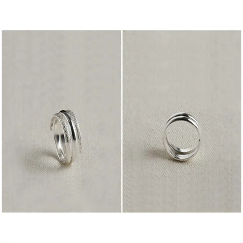 originally design 100% sterling Silver nail sand craft three layer personality couple rings Silver fine jewelry accessory