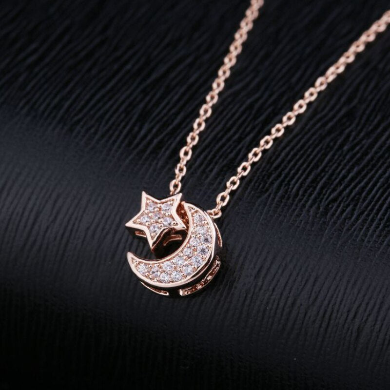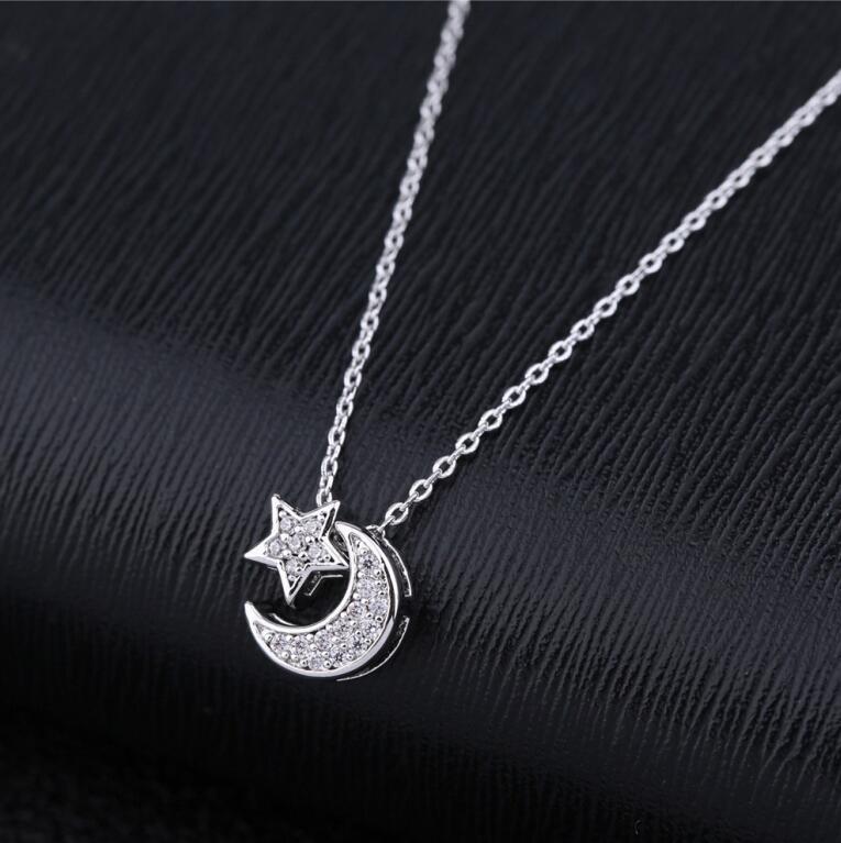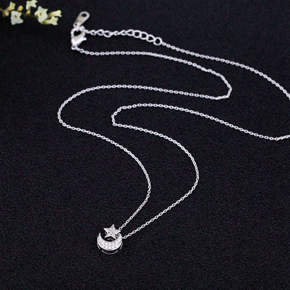 SIPENGJEL Trendy Inlaid Zircon Dainty Moon Star Pendant Necklace Simple Korean Style Chain Necklaces For Women Fine Jewelry 2021