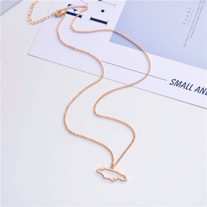 Small Caribbean Sea Island Jamaica Map Necklace Outline Country of Jamaican Continent African Female Charm Chain Jewelry