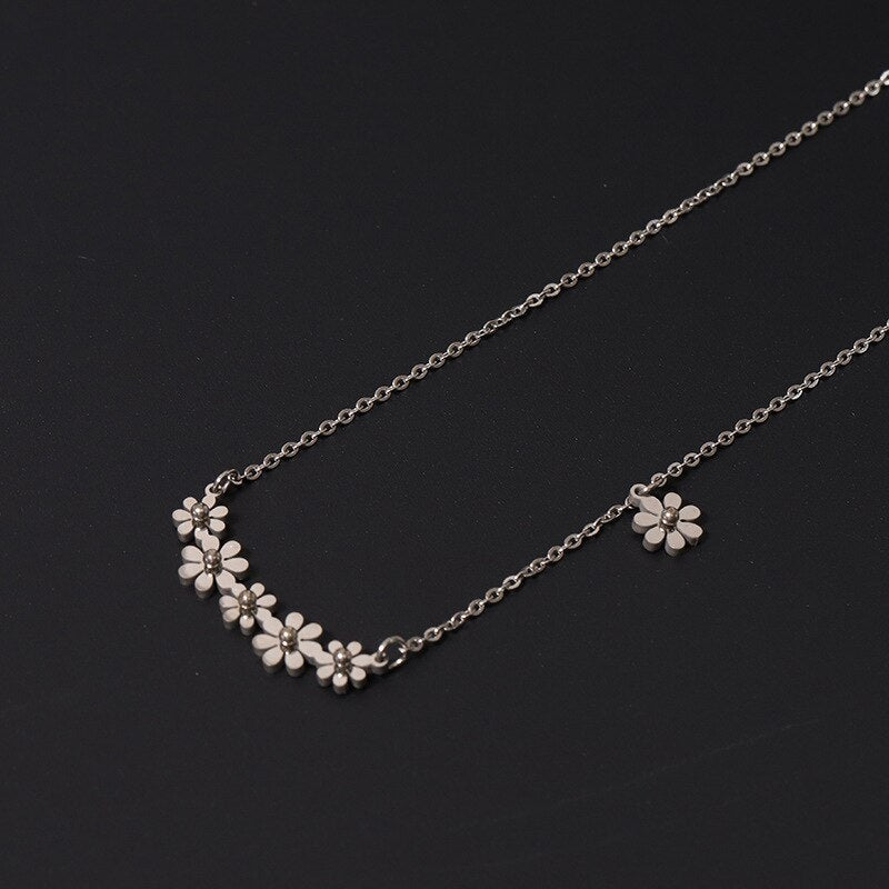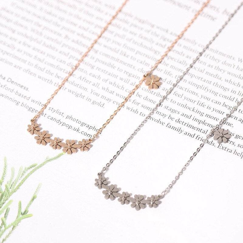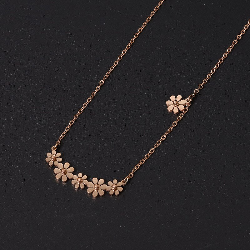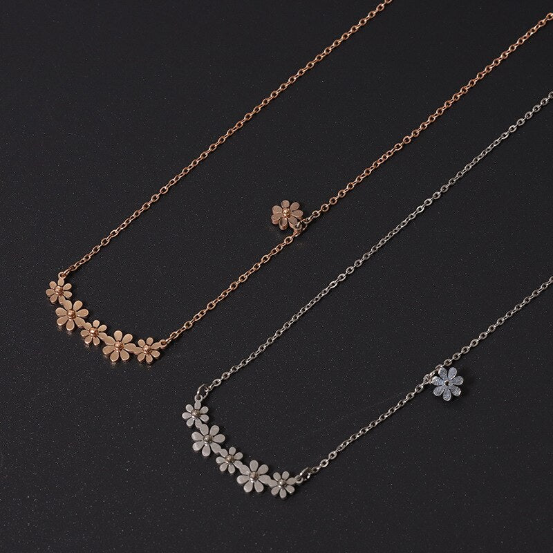 Small Daisy Steel Titanium Necklace Trend Simple Girl Stainless Steel Rose Gold Clavicle Chain Charm Jewelry Party Gift