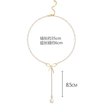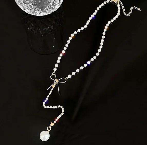 Small Pearl Bowknot Long Necklace Bohemian Choker Chain Female