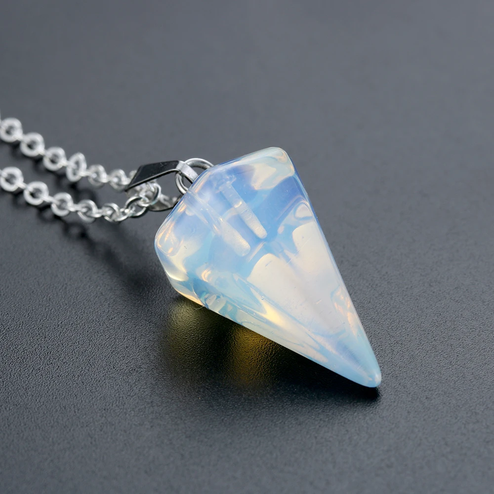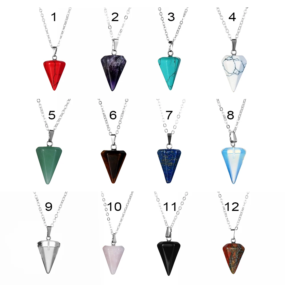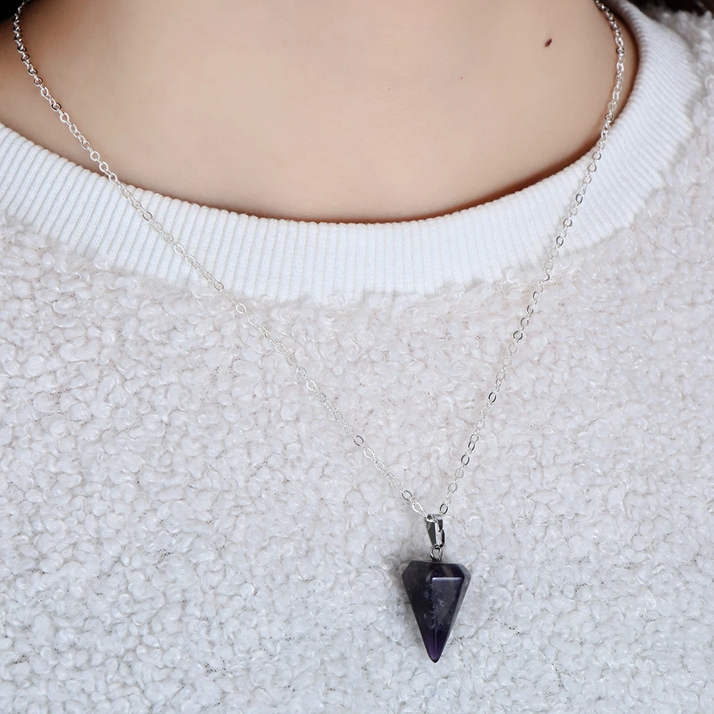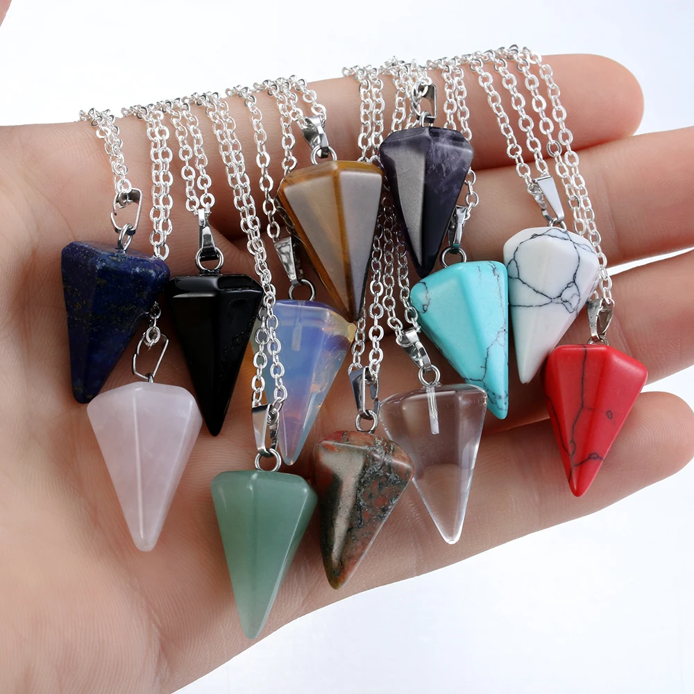 Small Size Reiki Pendulum Natural Stone Amulet Healing Crystal Hexagonal Chain Pendant Charm Necklace for Men Women Jewelry