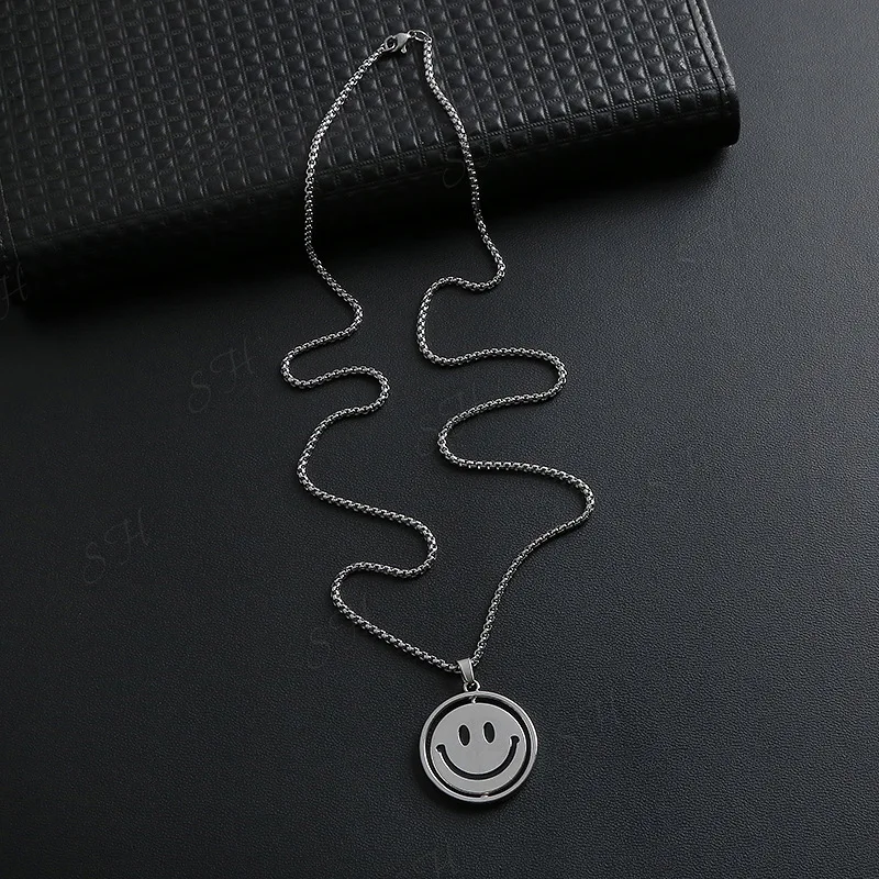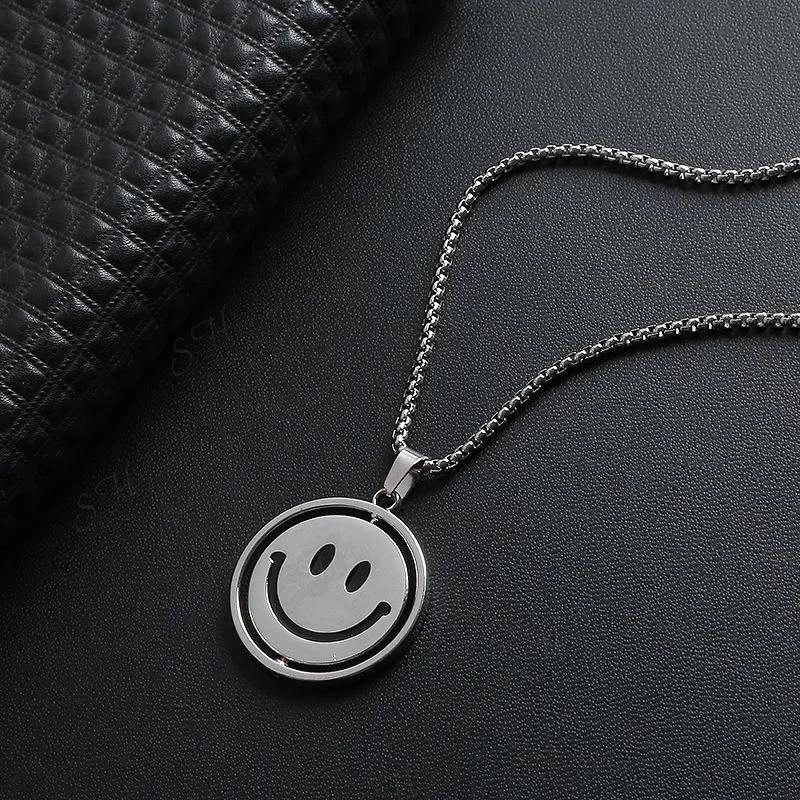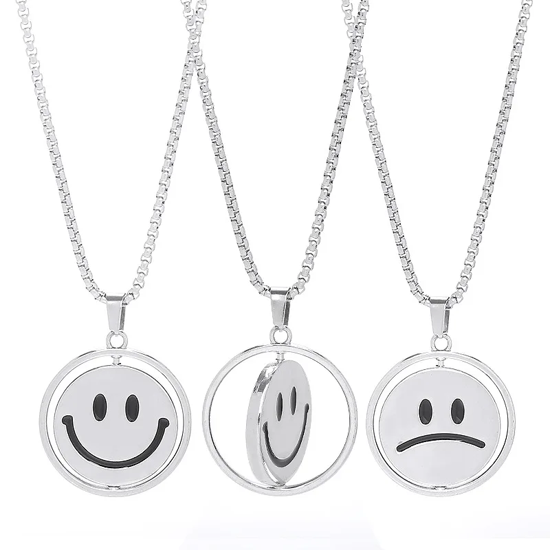 Smile Sad Double Faces Pendant Necklace Men Women Trendy Simple Jewelry Gift Silver Color Urban Boys