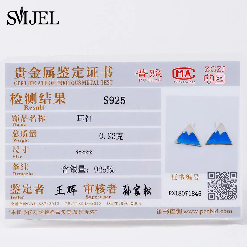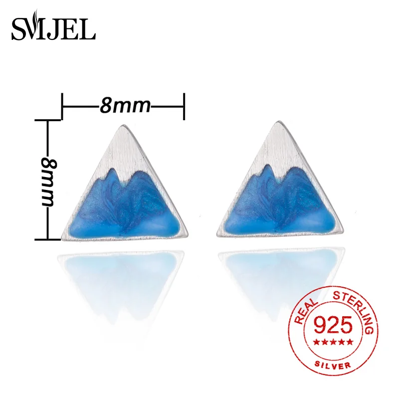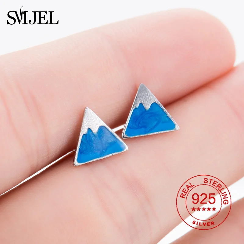 100% 925 Sterling Silver Earrings Snow Mountain Stud Earring for Women Blue Color Wave Enamel Earrings Jewelry Gifts