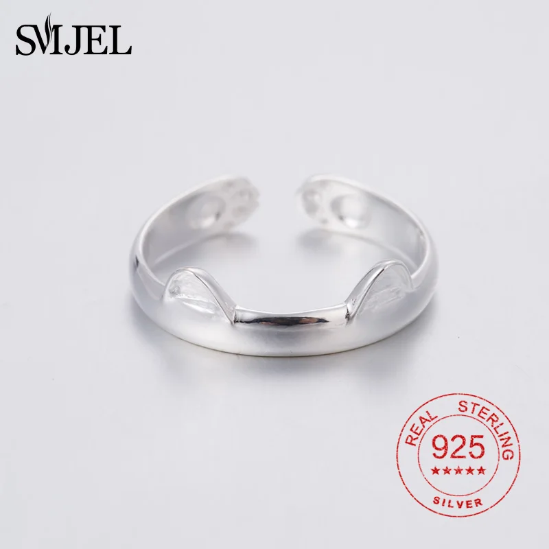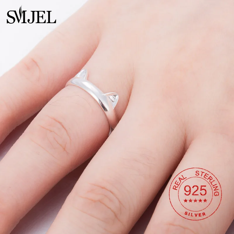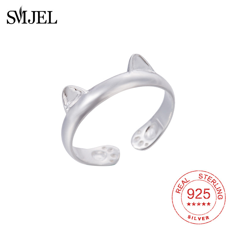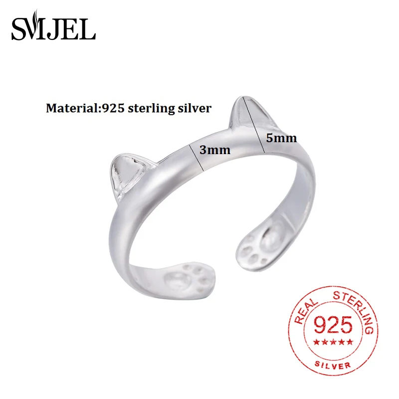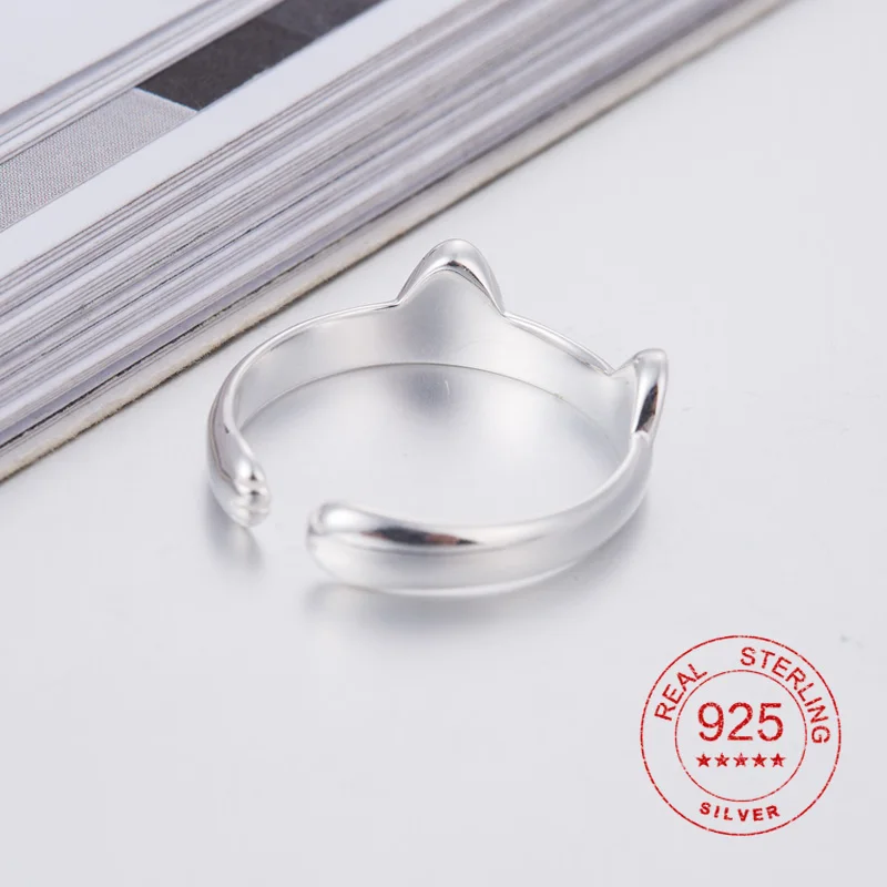 100% 925 Sterling Silver Naughty Little Cat Finger Ring for Women Sterling Silver Jewelry Cat Ear Paw Rings Girl Gift