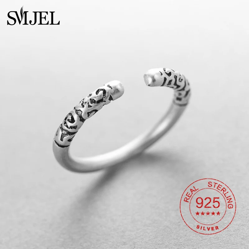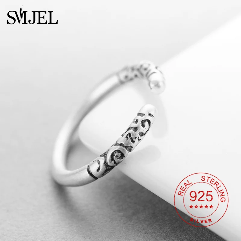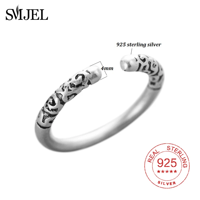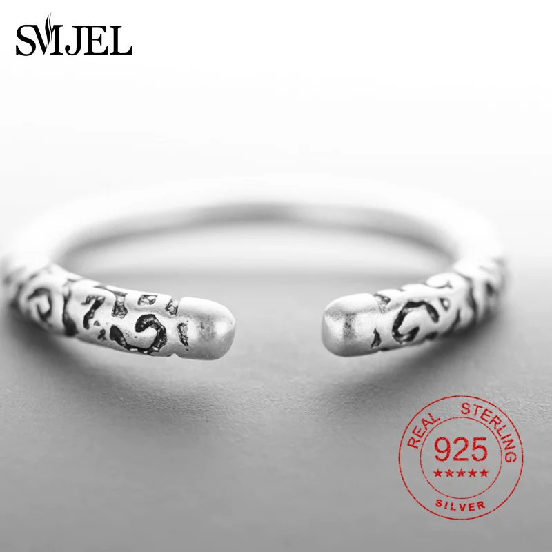 100% 925 Sterling Sliver Vintage Simple Circle Round Rings for Women Men Statement Ring Pattern Engraved Jewelry Gifts