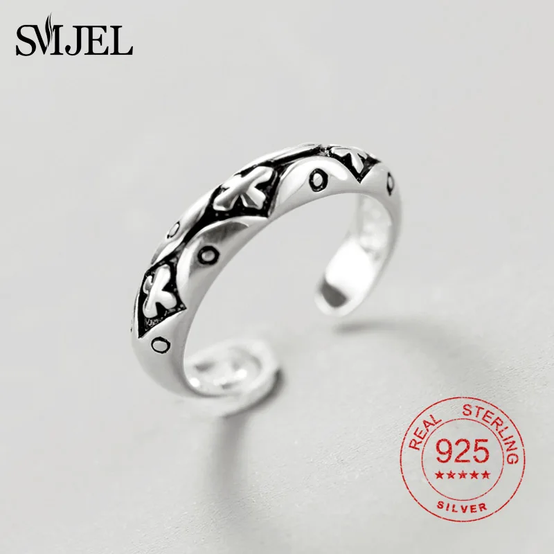 100% Sterling Silver Cross Ring for Men Woman Black Color Co Male Casual Remove Design Silver Jewelry