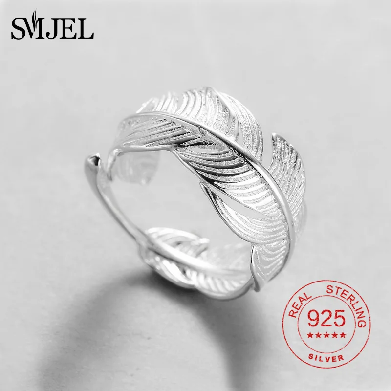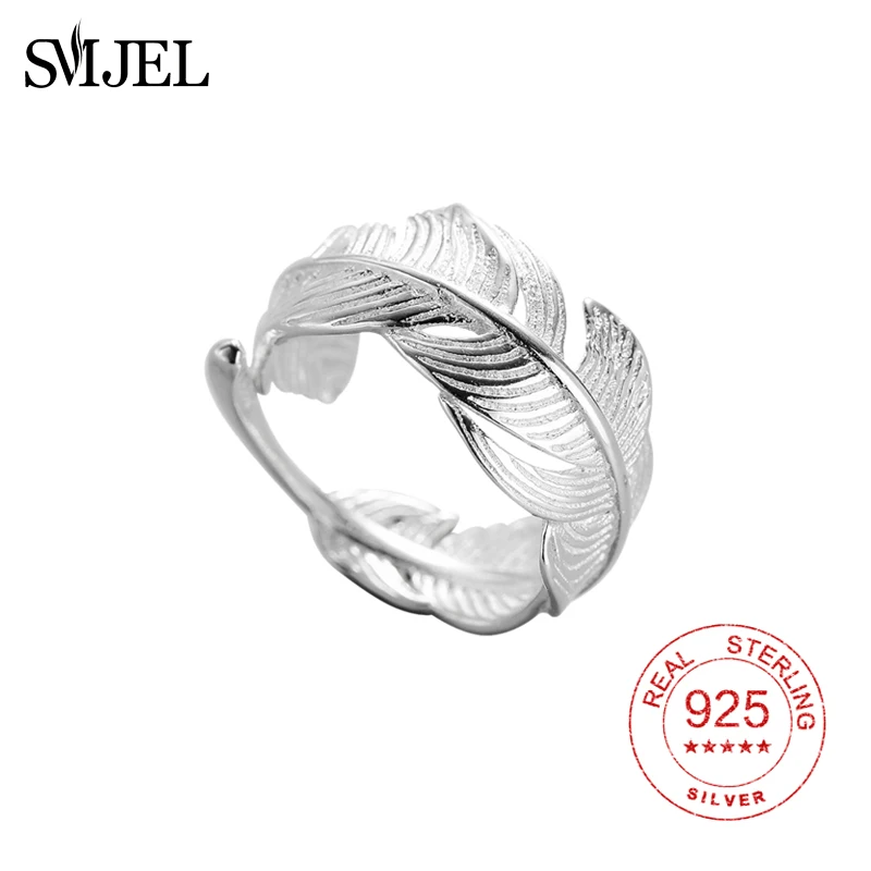 925 Sterling Sliver Vintage Leaf Rings For Women Boho Wedding Ring Feather Jewelry Wholesale Anillos