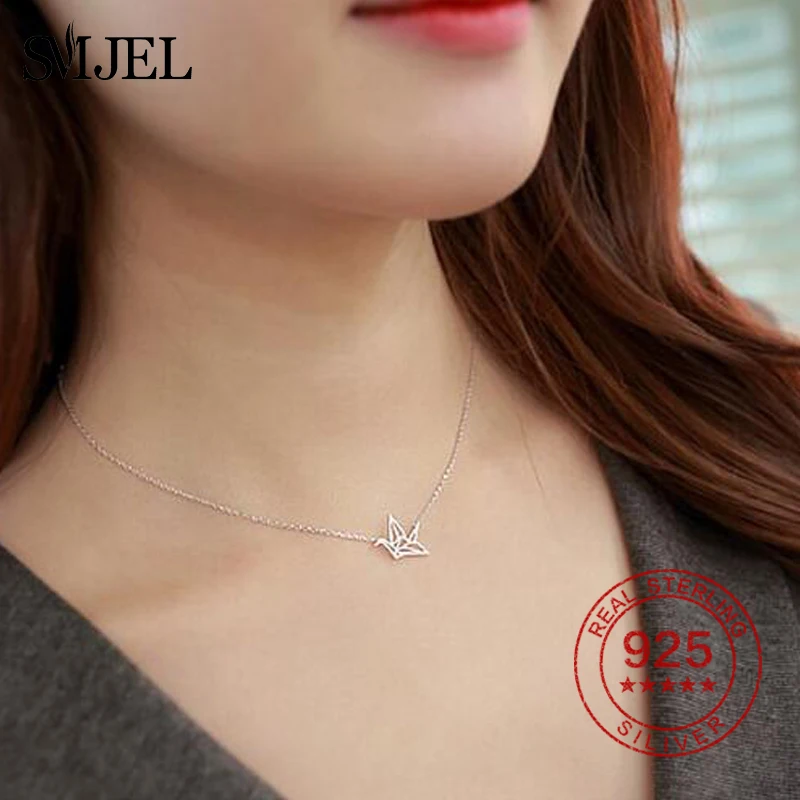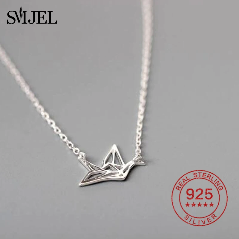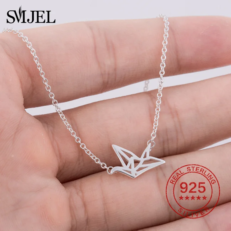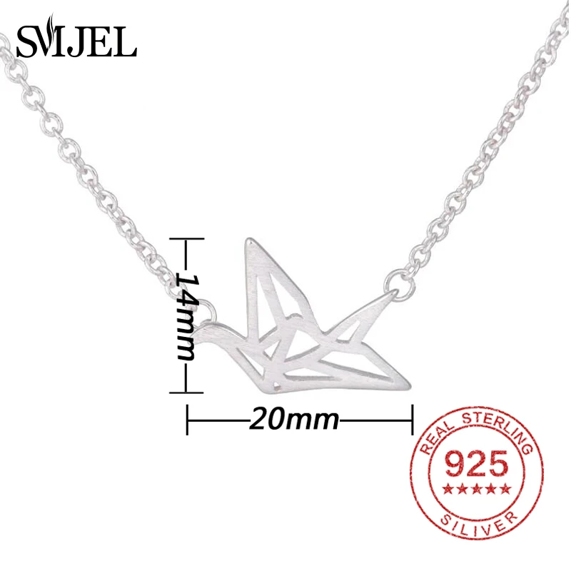 Real Silver 925 Elegant Origami Crane Necklace Chain Sterling Silver Geometric Bird Pendants&Necklaces Wholesale Jewelry