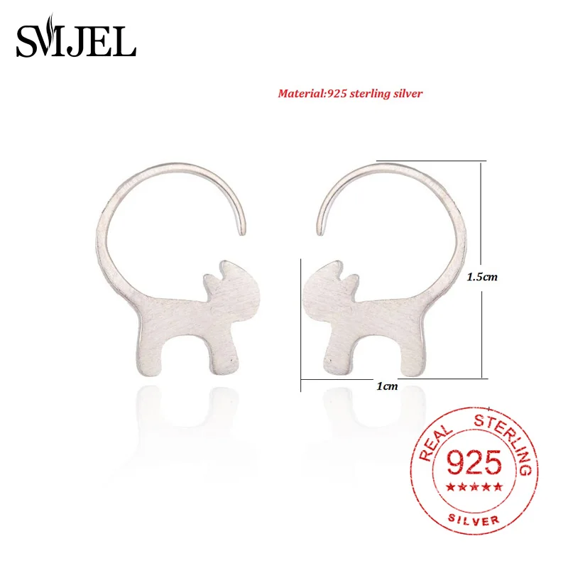 Solid 925 Sterling Silver Cute Spirit Long Tail Cat Earrings Animal Female Stud Earrings Lovely Kitten Jewelry Girl Gifts