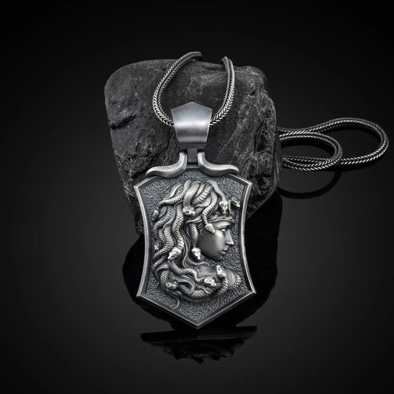 Snake hair petrified Medusa pendant necklaces for women Gothic style tag Jewelry on the neck Pure tin Man chain necklace