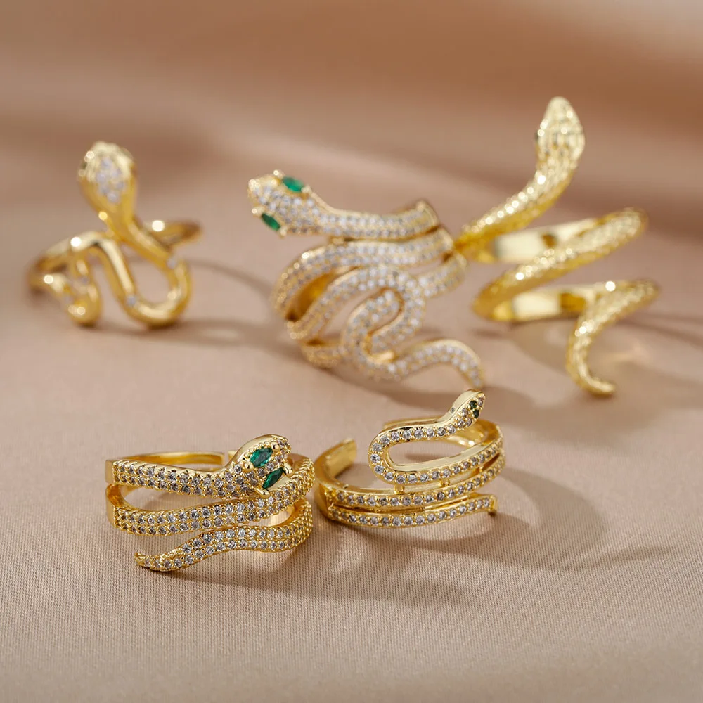 Snake Rings For Women Men Punk Hip Hop Open Adjustable Gold Color Ring Stainless Steel Zircon Aesthetic Jewelry anillos Homme