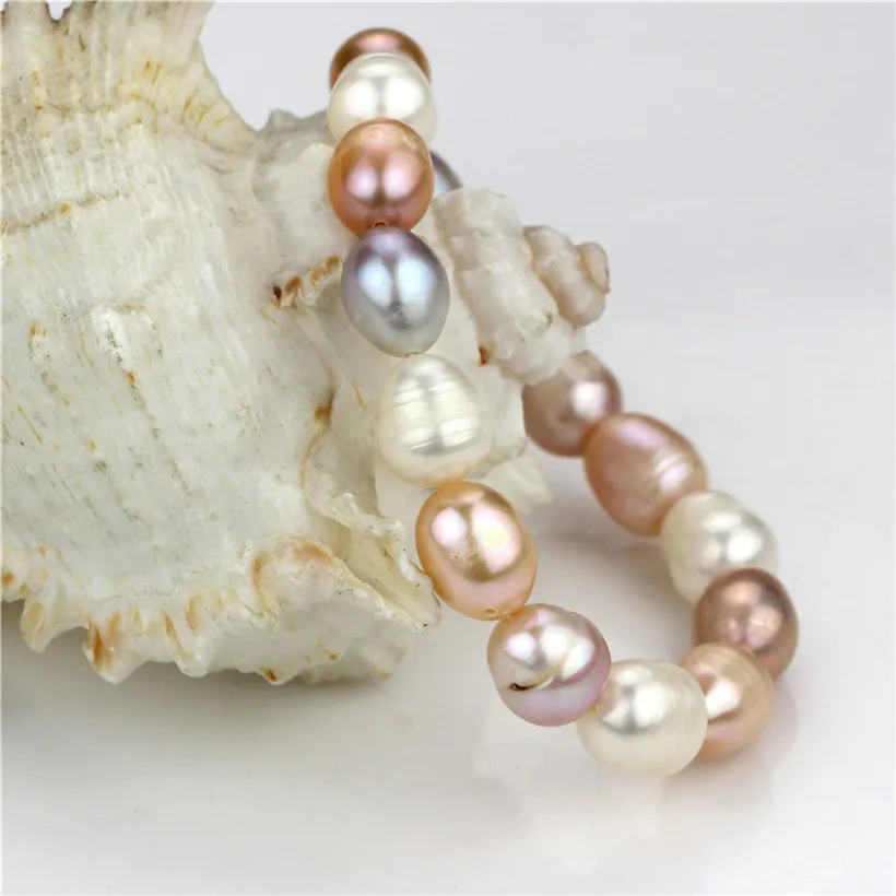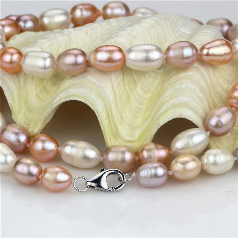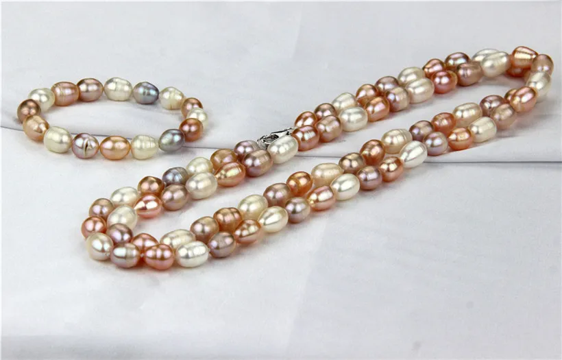 10mm A rice mixed color natural necklace and bracelet pearl set for women 925 silver clasp