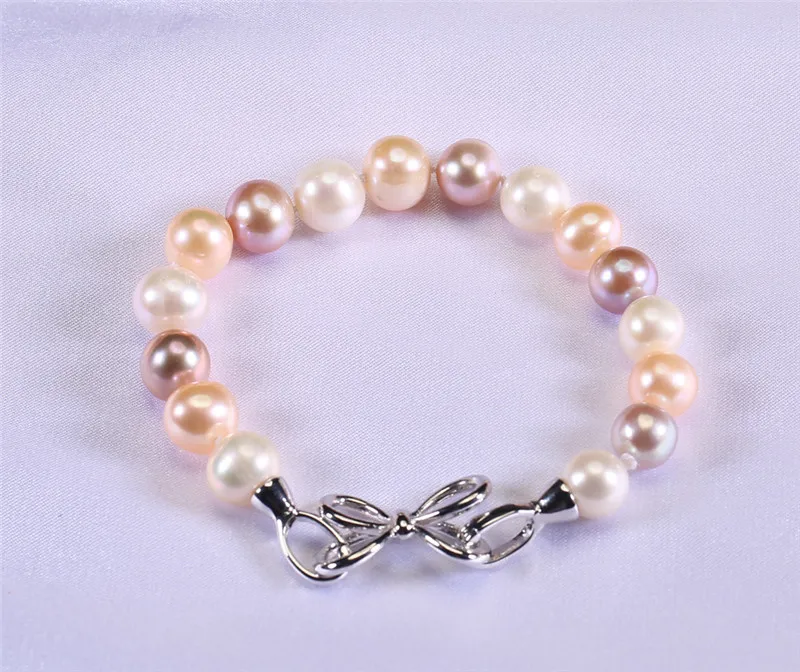 9mm Off Round Real Pear Jewelry Bracelet mixed Color Pearl Bracelet 925 Sterling Silver Bracelet For Women