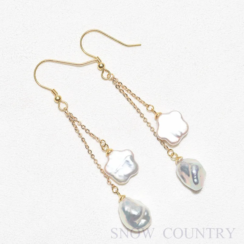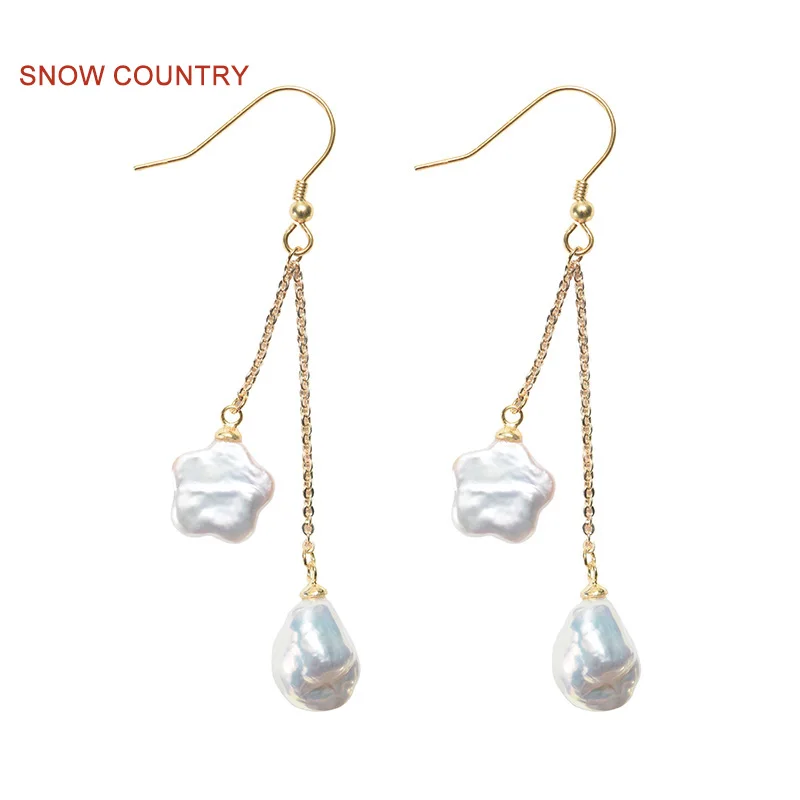 for Girl Personality Ear Hooks Unique Baroque Pearl Earrings High Luster Sterling Silver