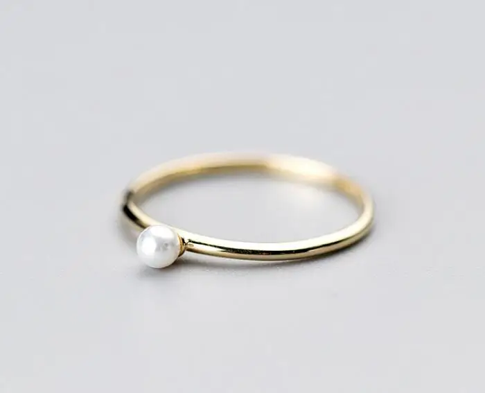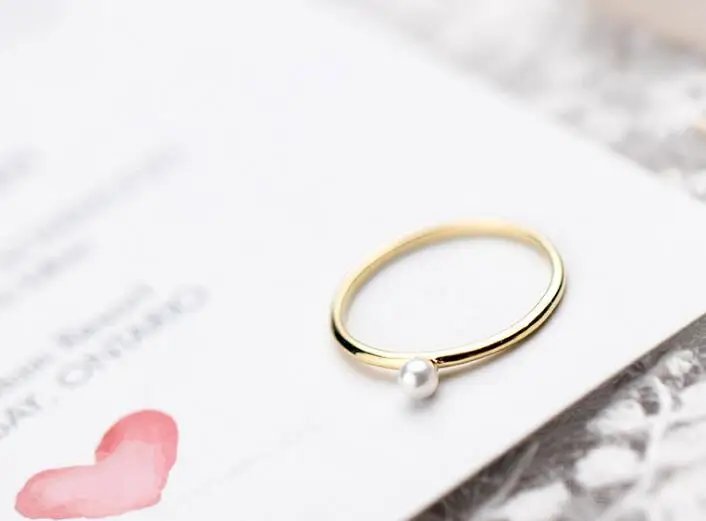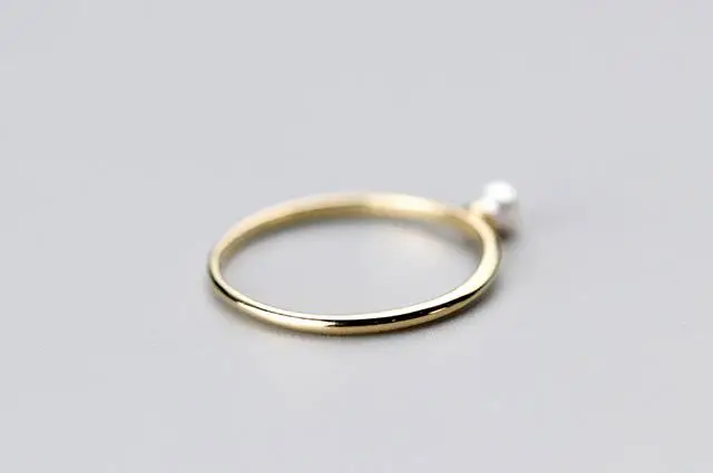 So Thin REAL.925 Sterling Silver fINE jEWELRY Golden Pearl Ring GTLJ1390