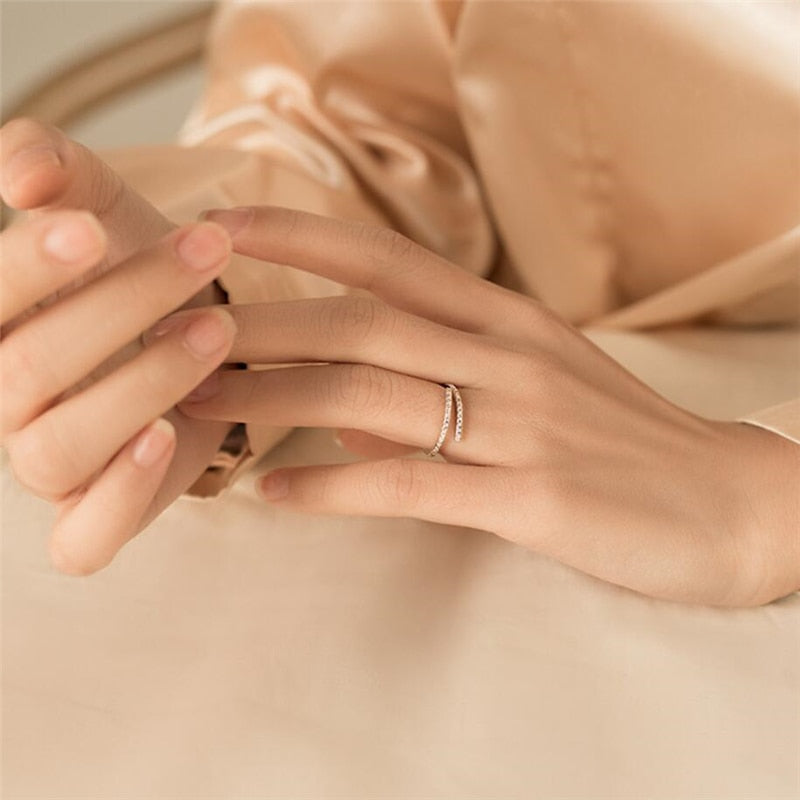 Sole Memory Rhinestone Shiny Cool Zircon 925 Sterling Silver Female Resizable Opening Rings SRI558
