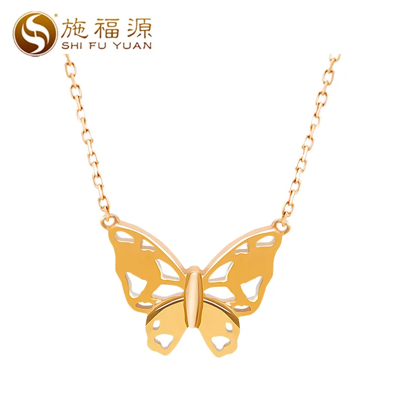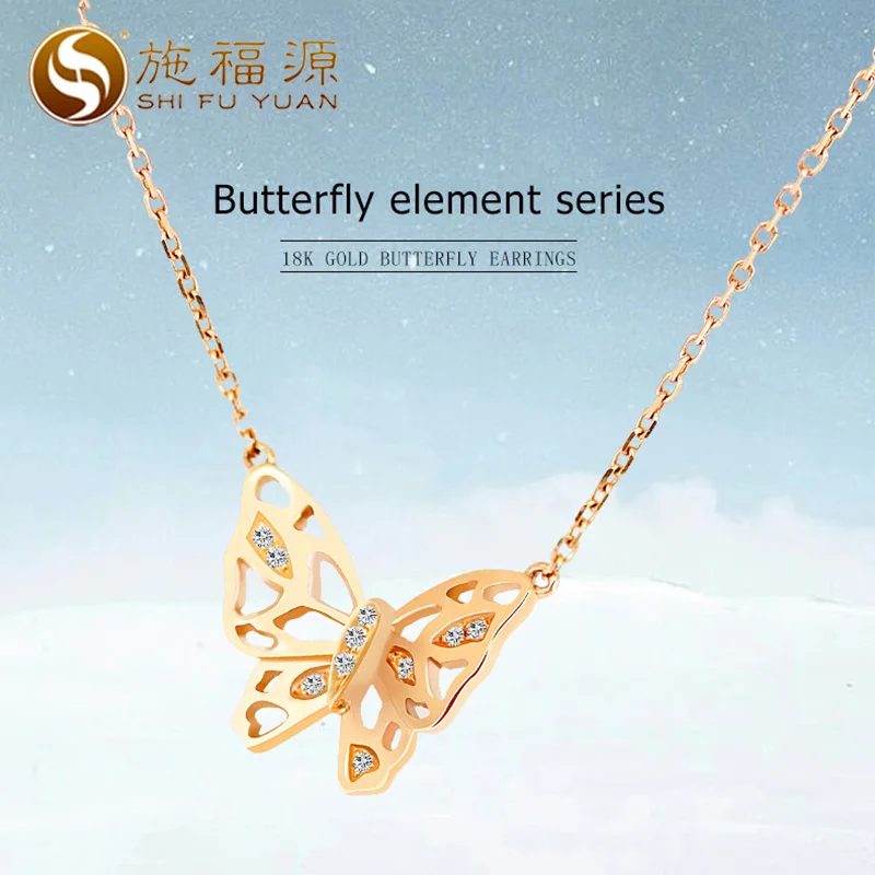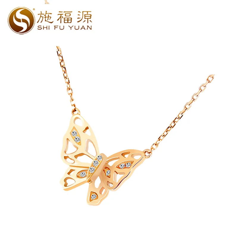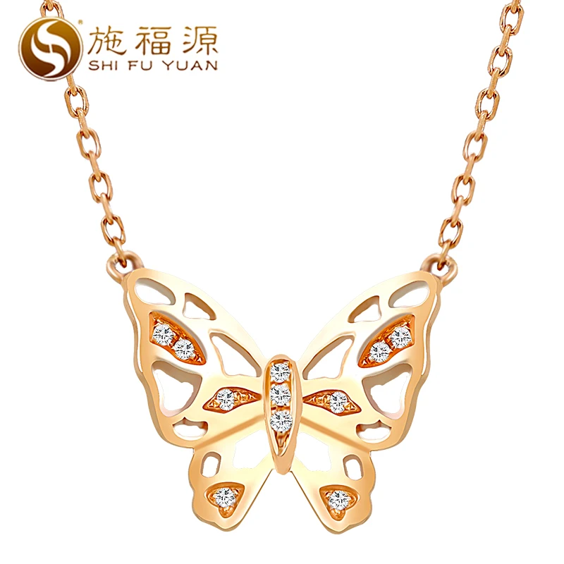 Solid 18k rose gold 10.3mm*12.4mm butterfly shape 0.035ct H/SI1 real diamond snake chain pendant necklace S05840P