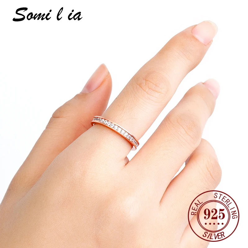 Somi l ia Genuine 925 Sterling Silver AAA Zirconia Finger Rings for Women Wedding Band Engagement Statement Jewelry Anel SML1134