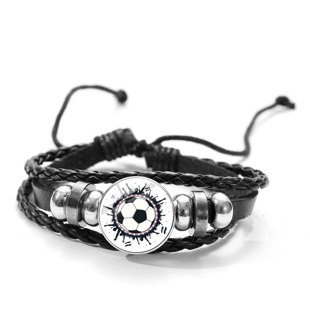 Favorite Basketball Snap Button Bracelet Punk Black PU Leather Bracelet Men Boys Wristband Ball Sports Hobby Accessories