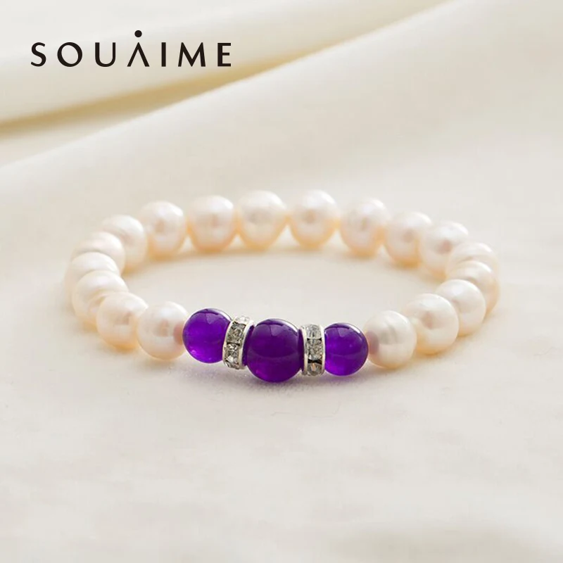 Natural Pearl Bracelet Charms Red Green Purple Brown Agate Bracelet Women's Bracelet