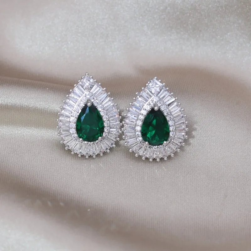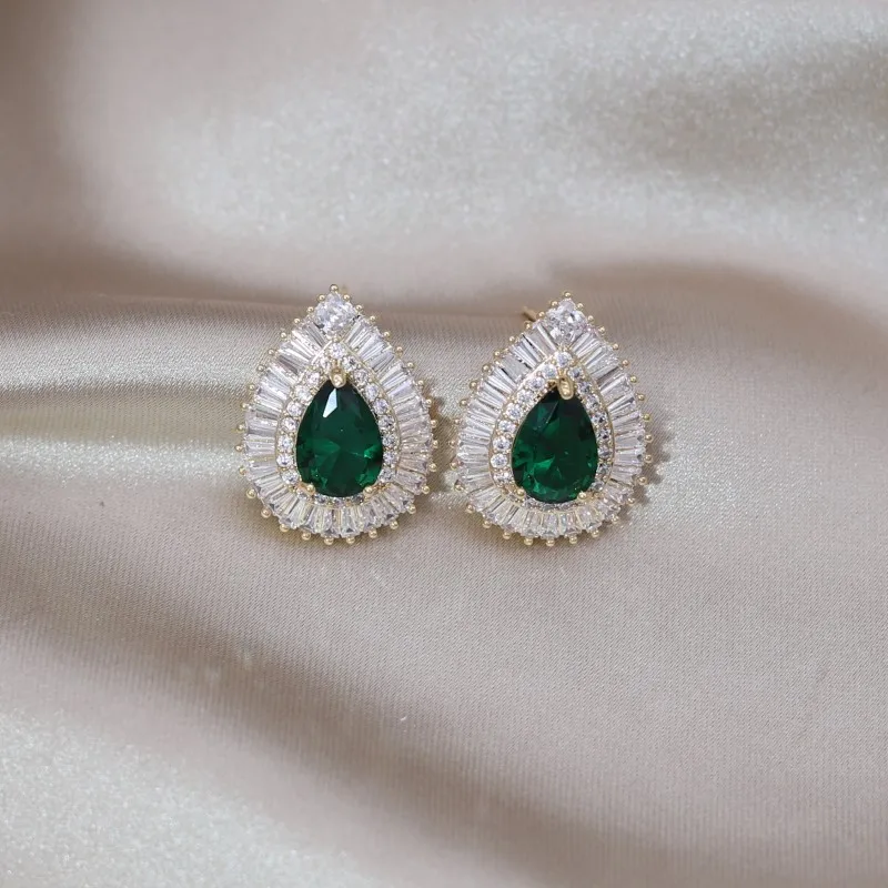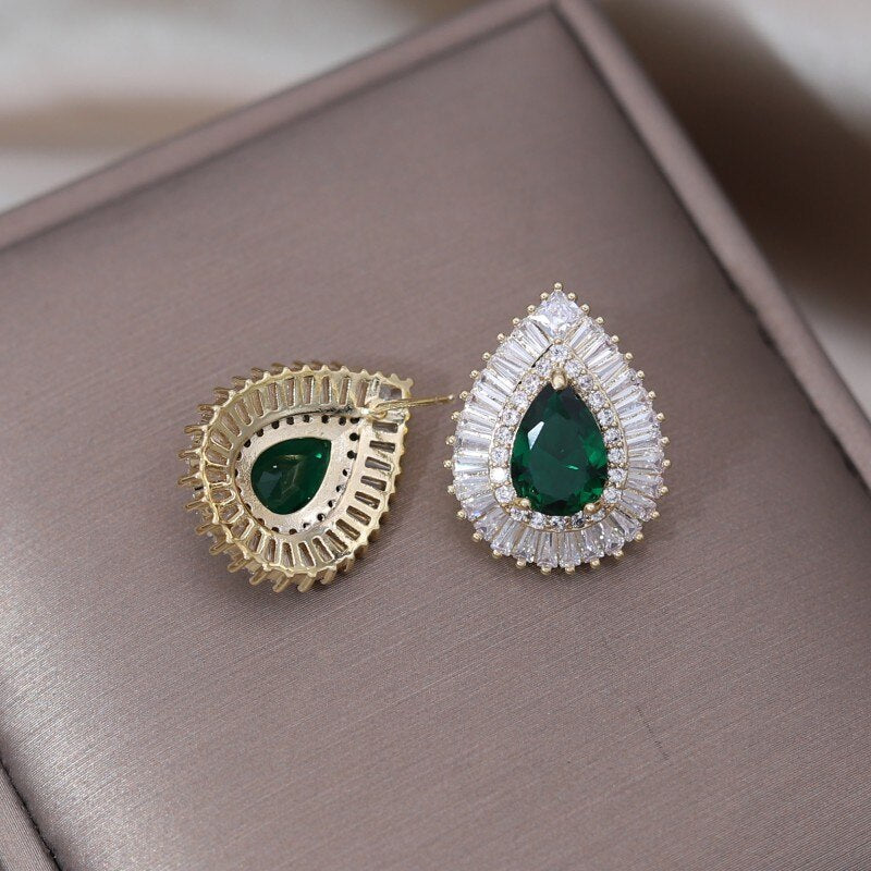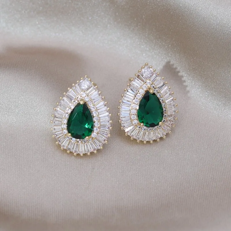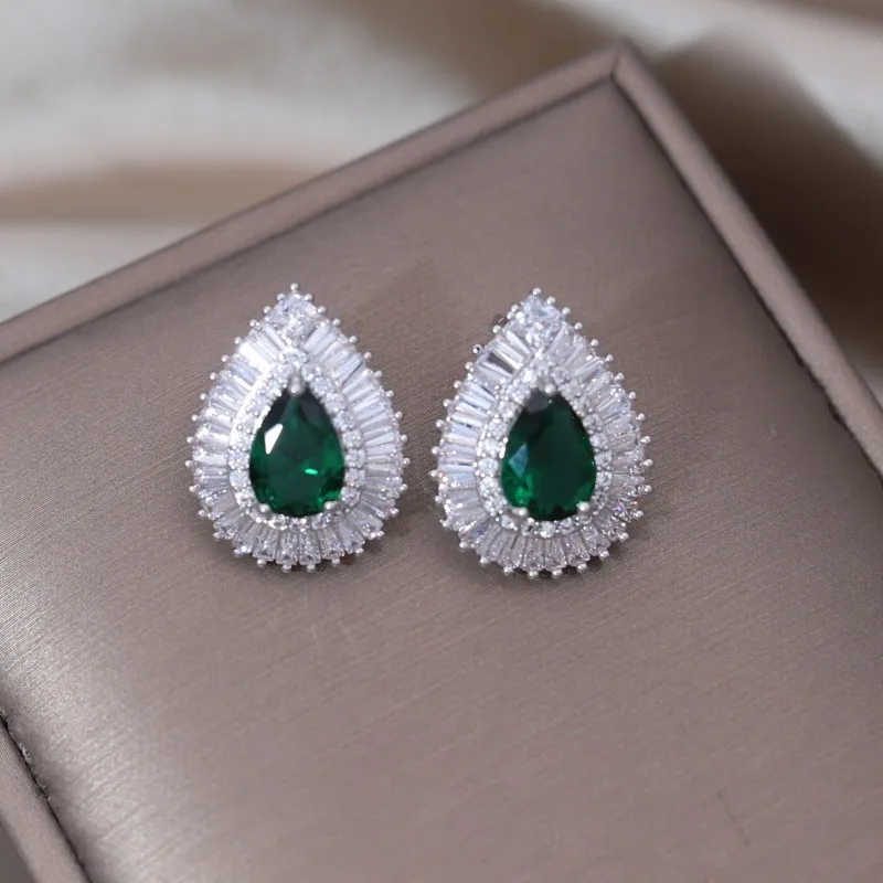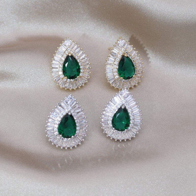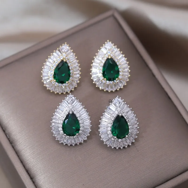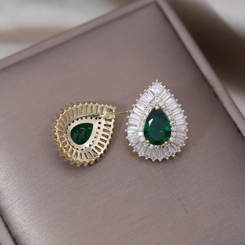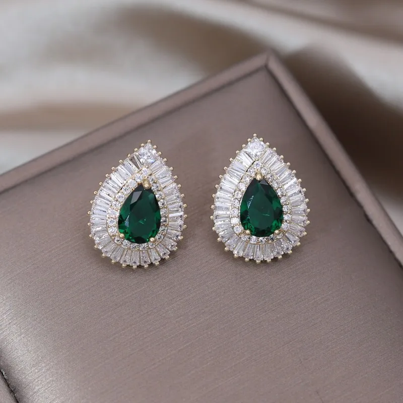 South Korea Design Jewelry Green Zircon Water Drop stud Earrings Elegant Women's Prom Party Accessories