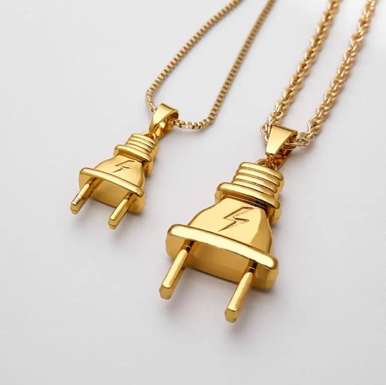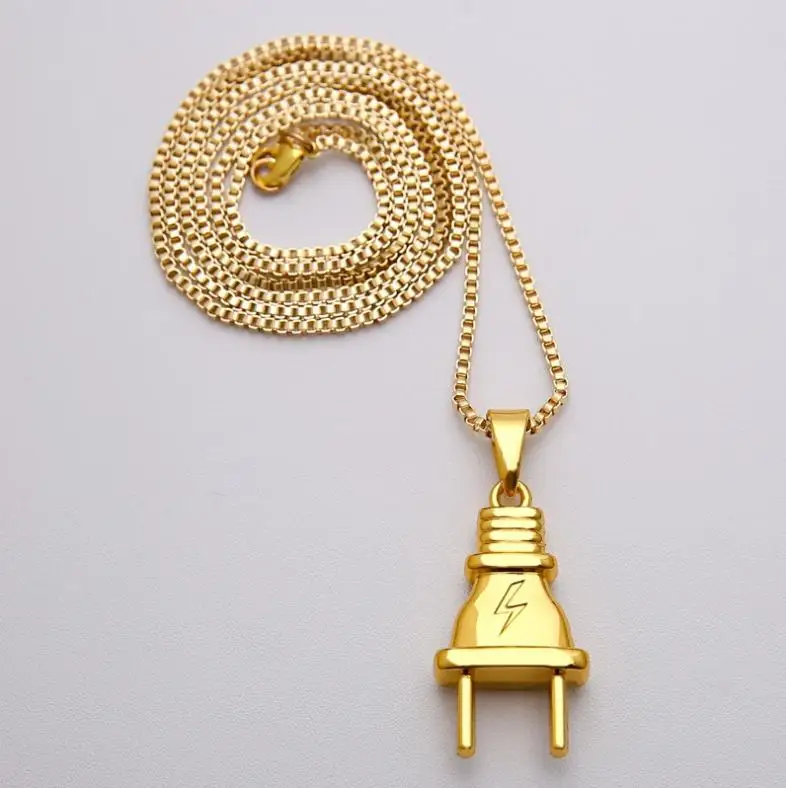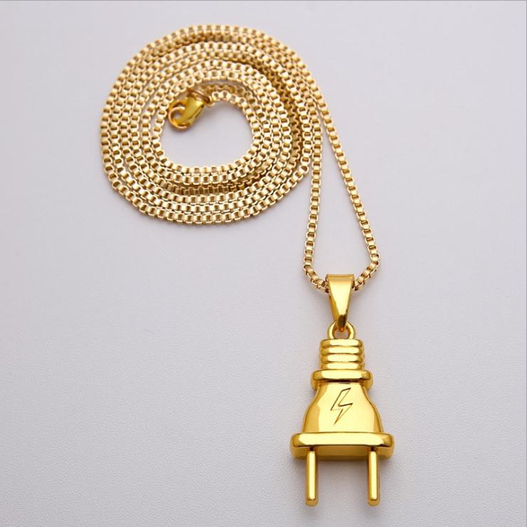 Spring Summer Out Street Creative Electric Plug Hipster Hip-Hop Necklace Lightning Logo Personality Accessories