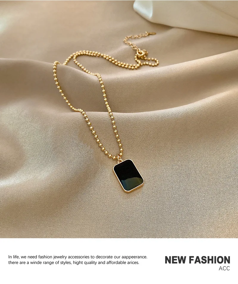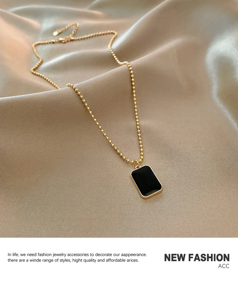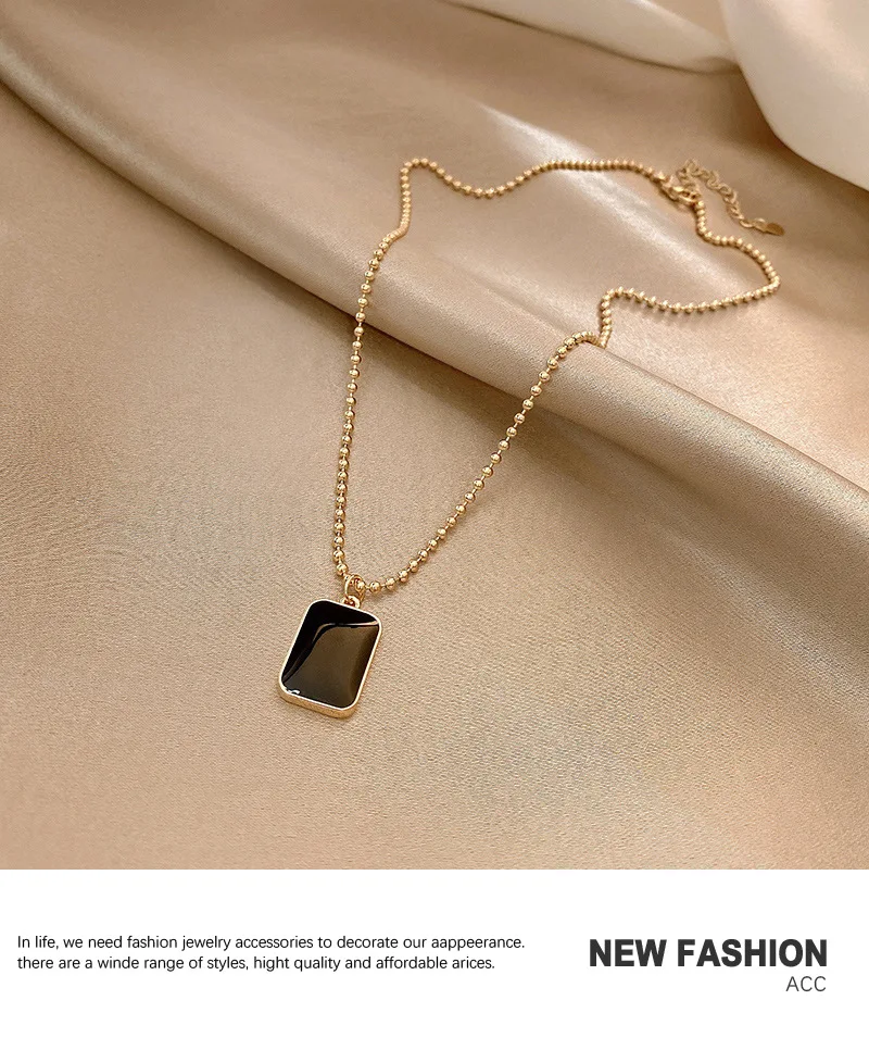 Square vintage pendant necklace ladies sweater chain jewelry party girl gift