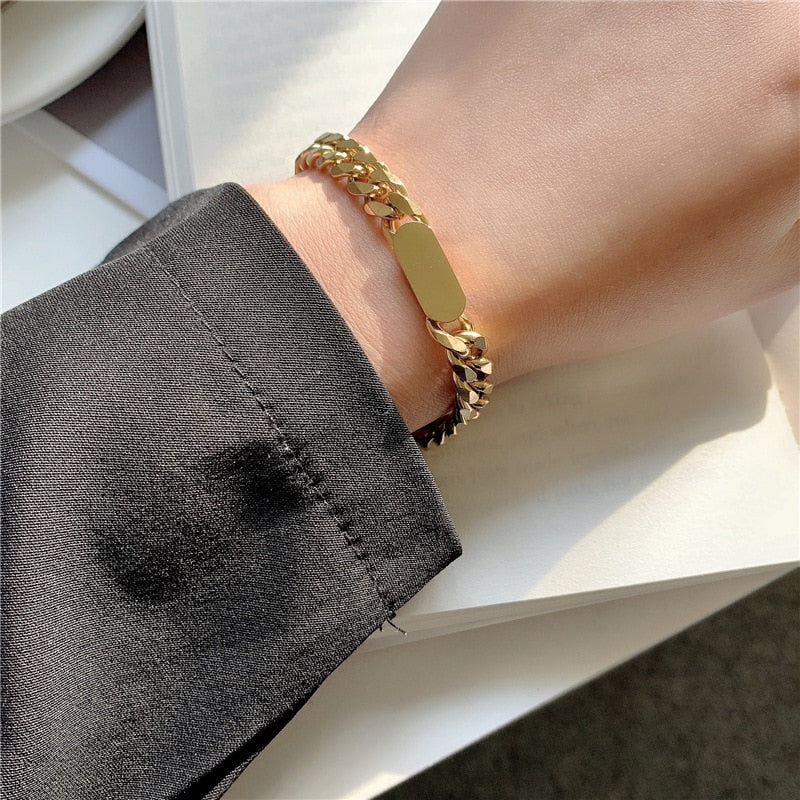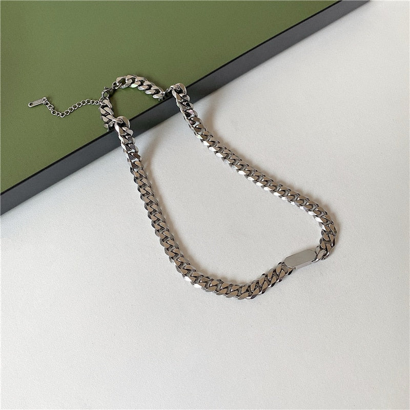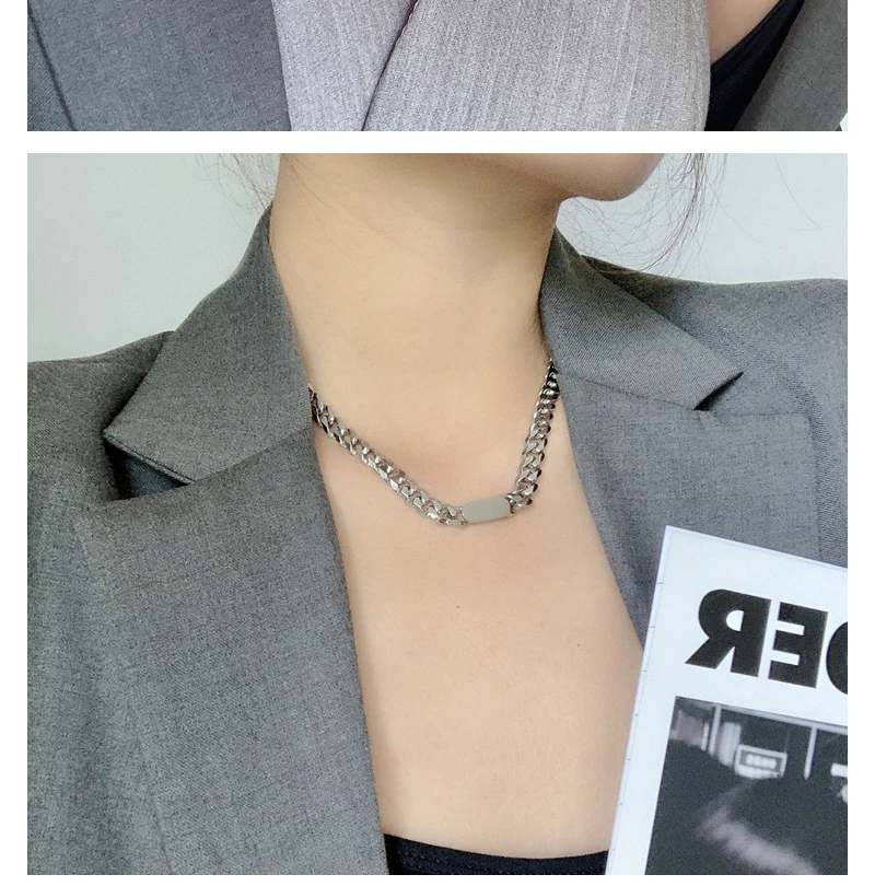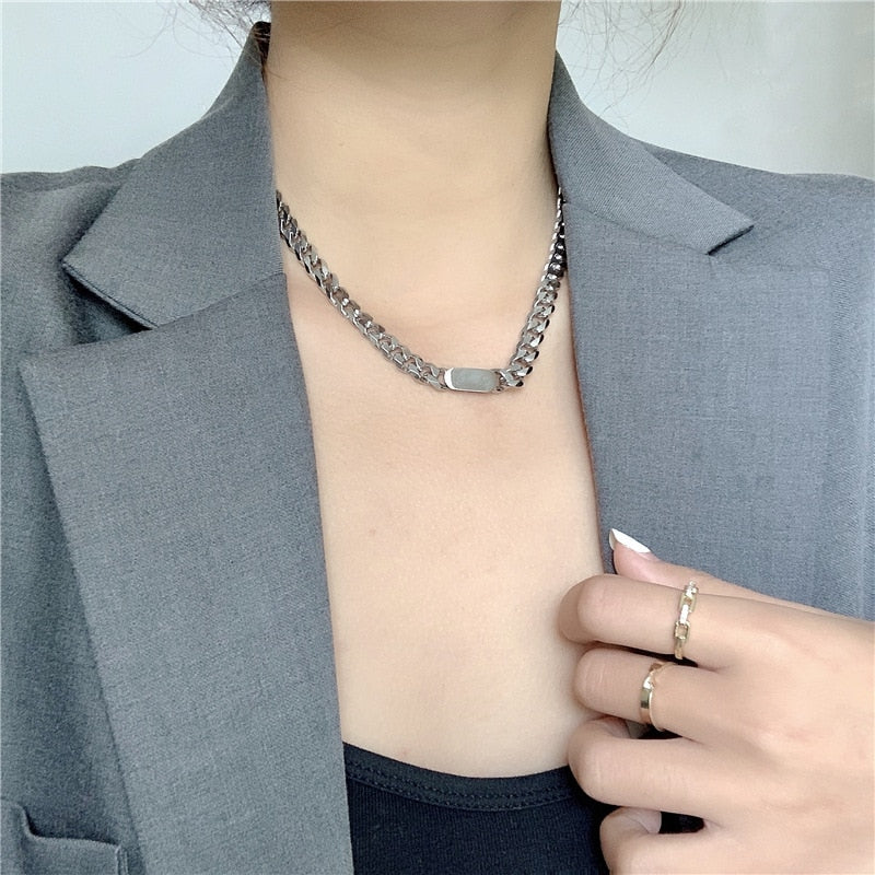 SRCOI Trendy Simple Titanium Steel Thick Chain Necklace Hip-Hop Style Exaggerated Women Clavicle Chain Jewelry Gifts