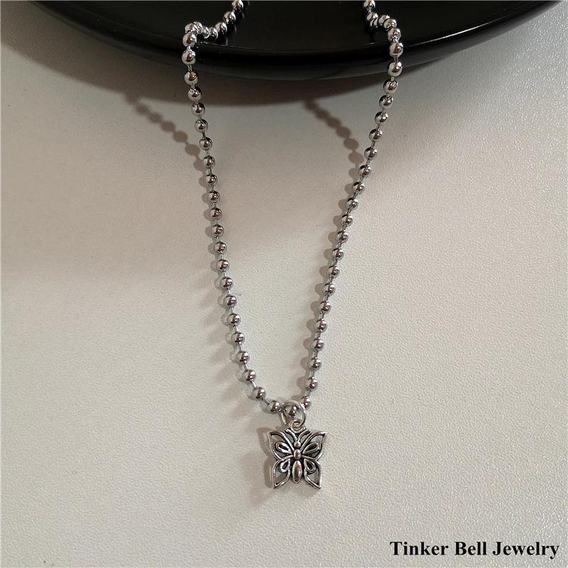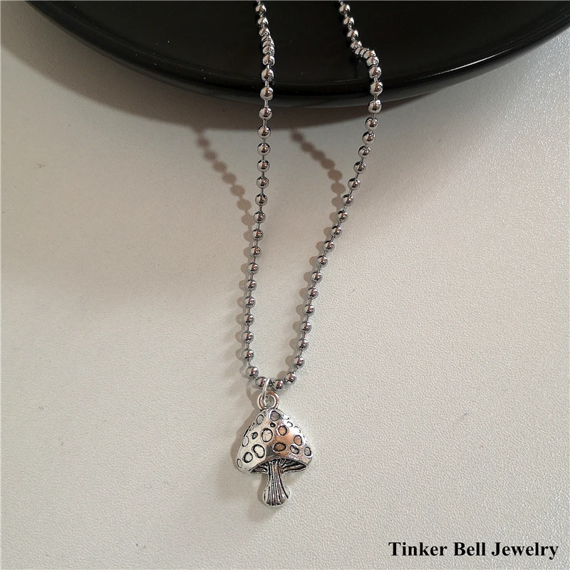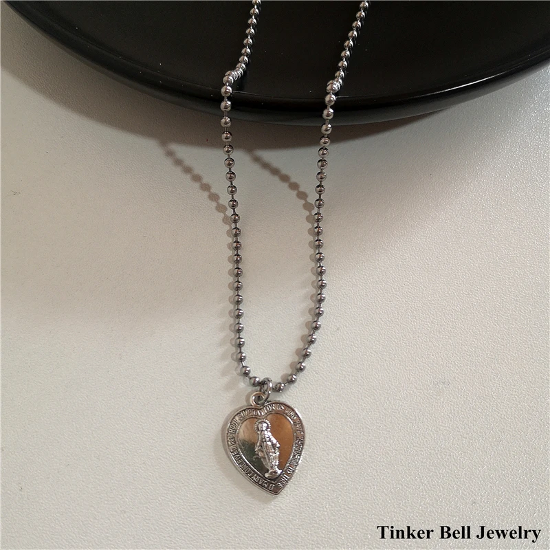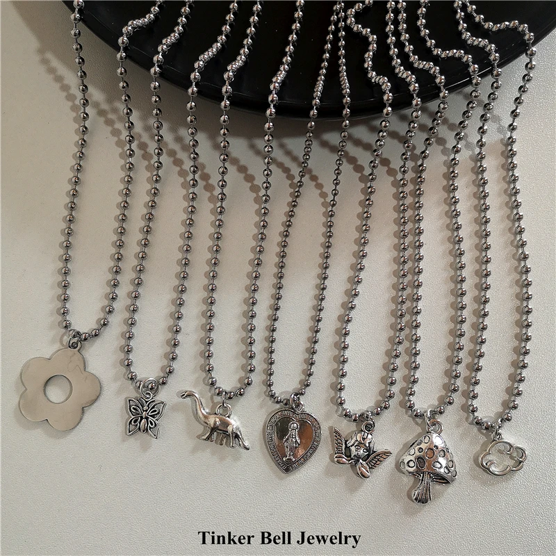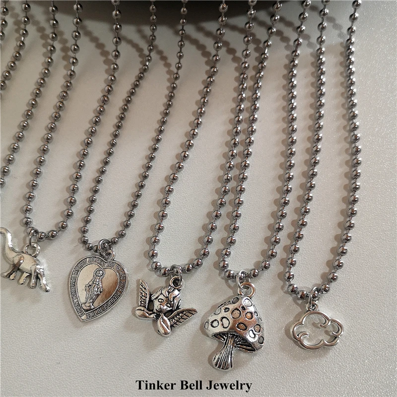 Stainless Steel Beads Chain Alloy Pendant Vintage Heart Jesus Cupid Butterfly Dinosaur Mushroom Grunge Necklaces For Women Men