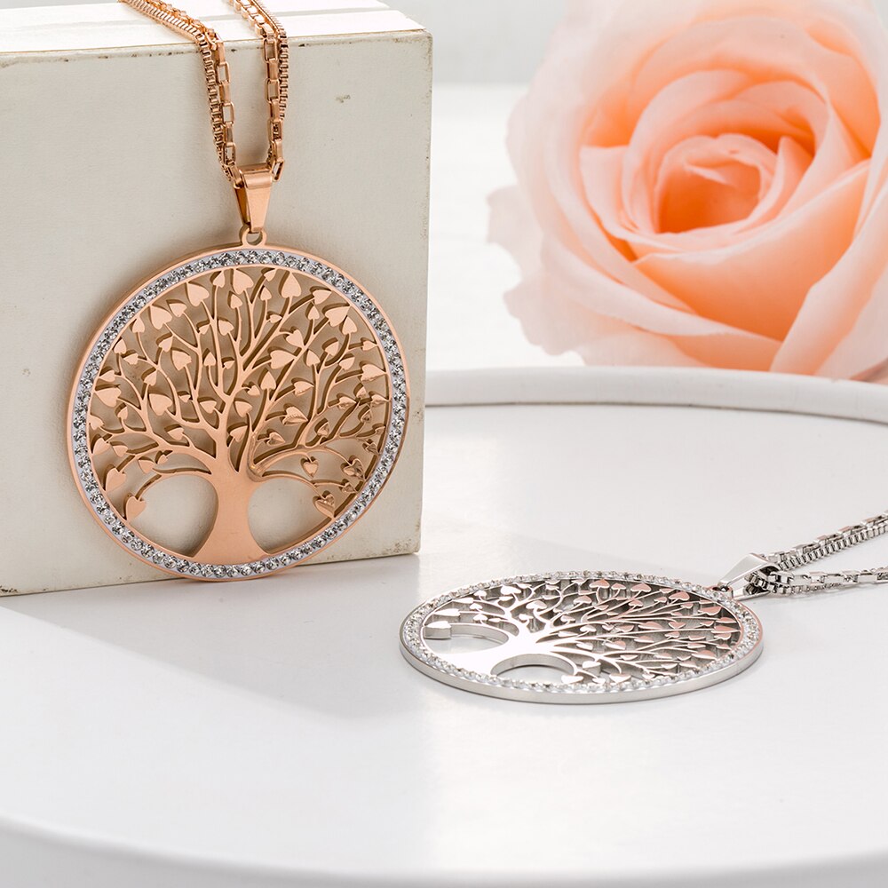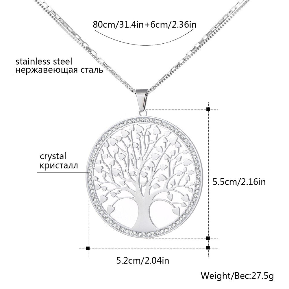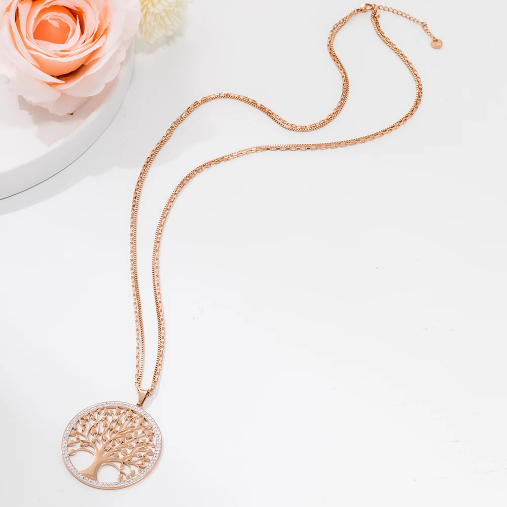 Stainless Steel Big Round Tree Of Life Pendant Necklaces for Women Long Sweater Crystal Necklace 2022 Jewelry Gift