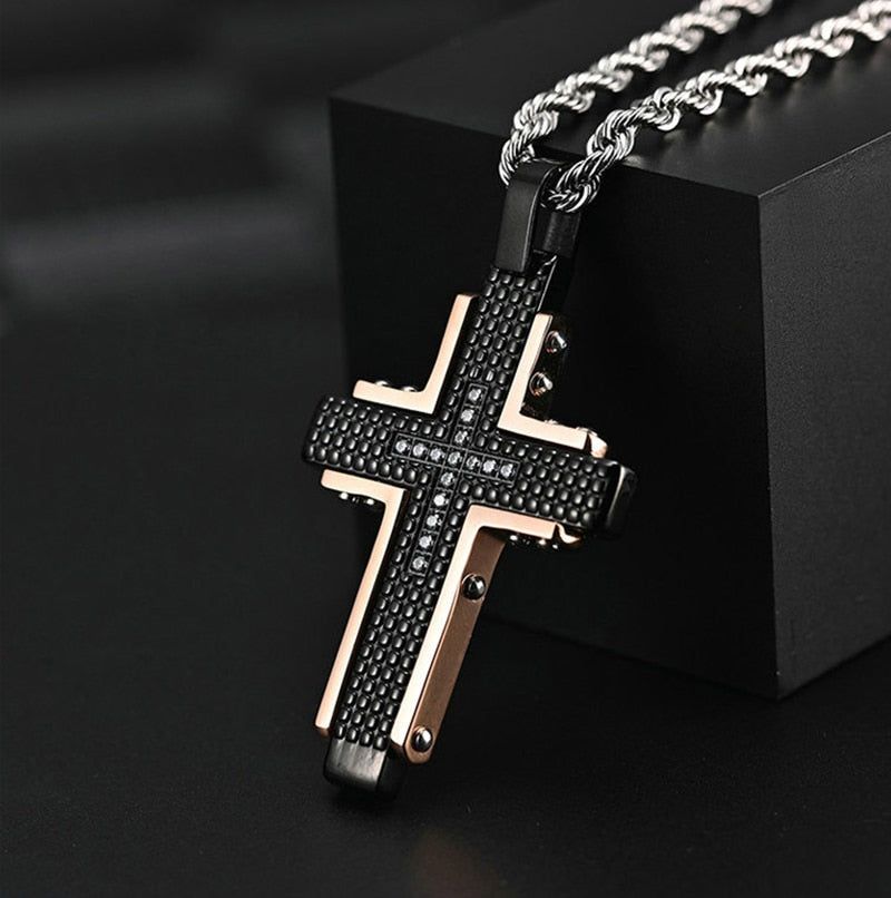 Stainless Steel Cross Necklace Assembled Pendant for Men 24 Inches Rope Twist Chain