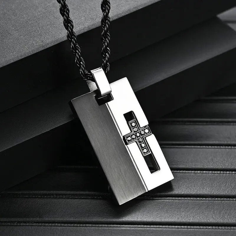 Stainless Steel Cross Necklace Assembled Pendant For Men 24 Inches Rope Twist Chain