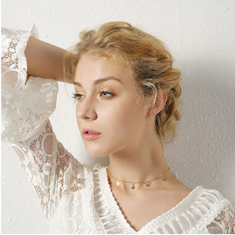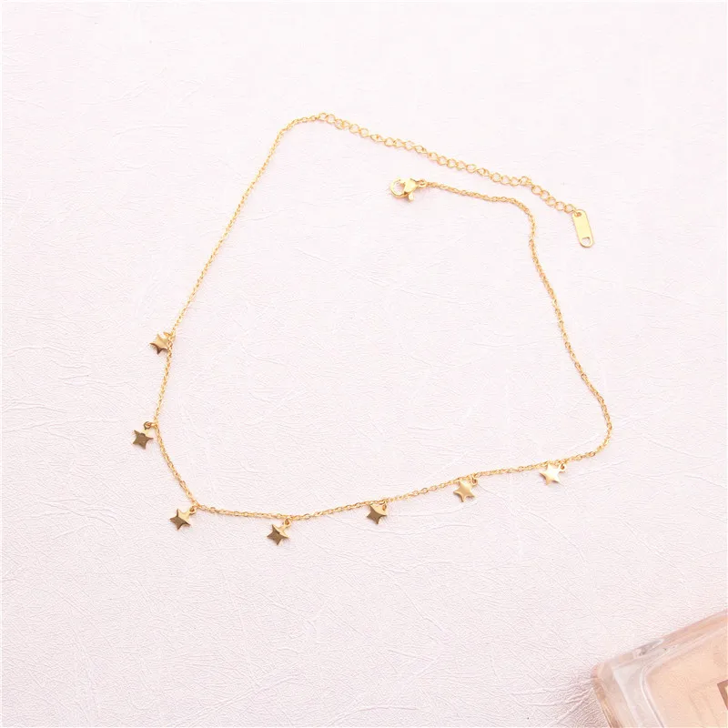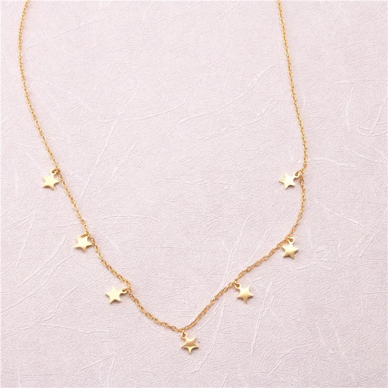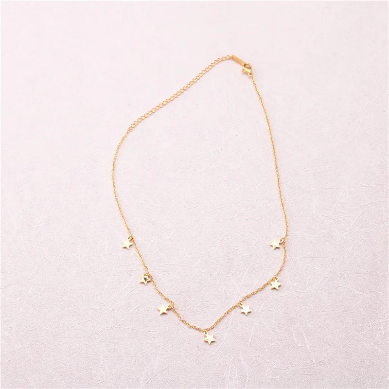 Stainless Steel Gold Silver Color 7 Star Choker Necklace for Women Dainty Star Necklace Statement Jewelry