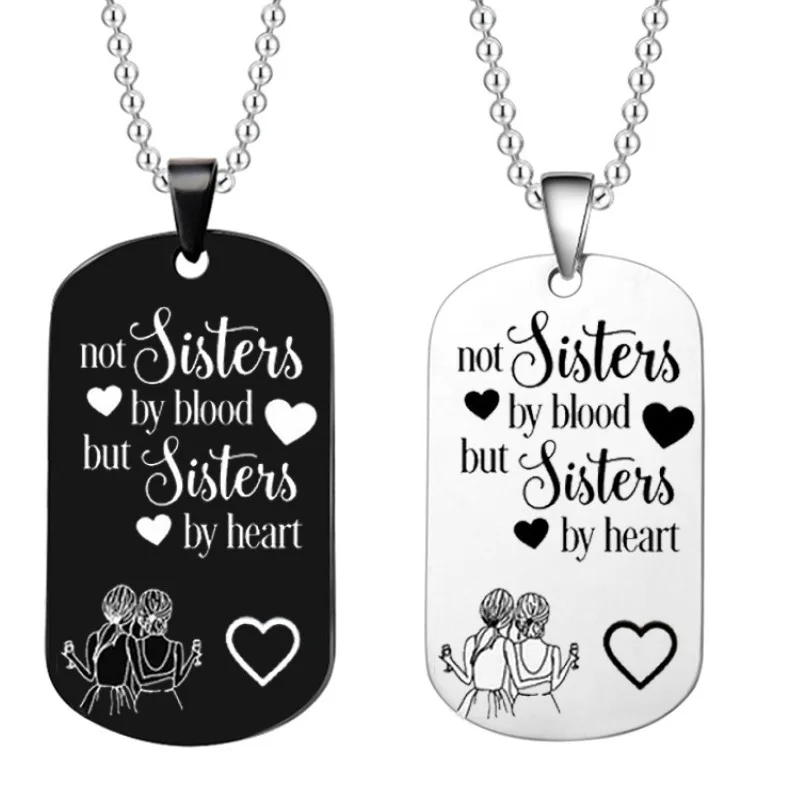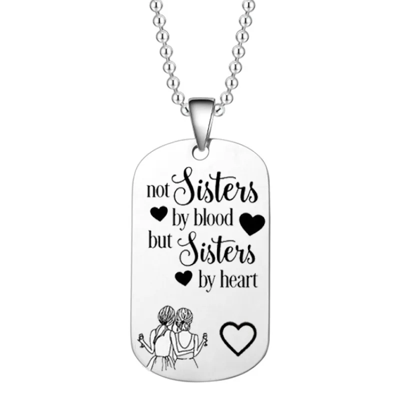 Stainless Steel Lettering Key Chain Engraved Not Sisters By Blood But Sisters By Heart Friend Gift Jewelry Women Necklace