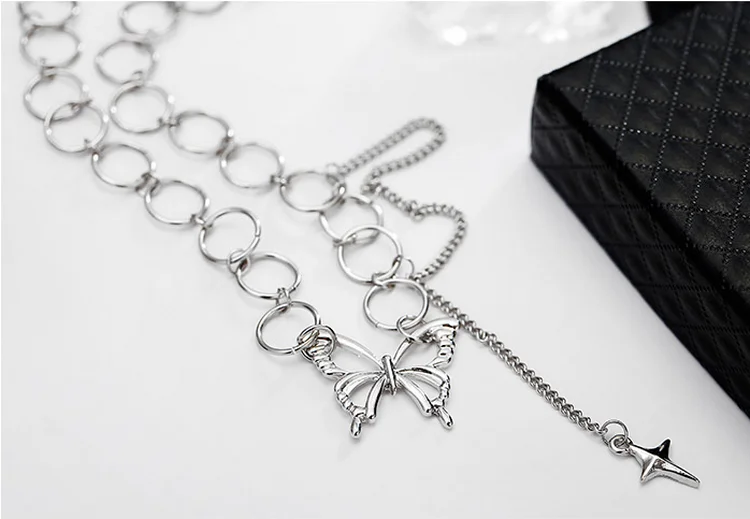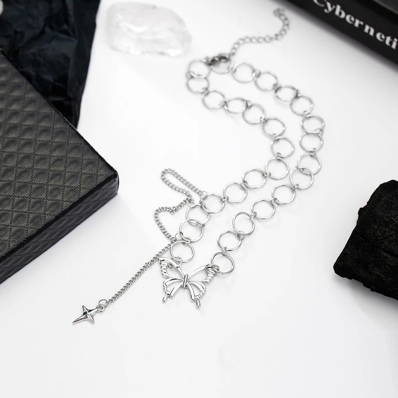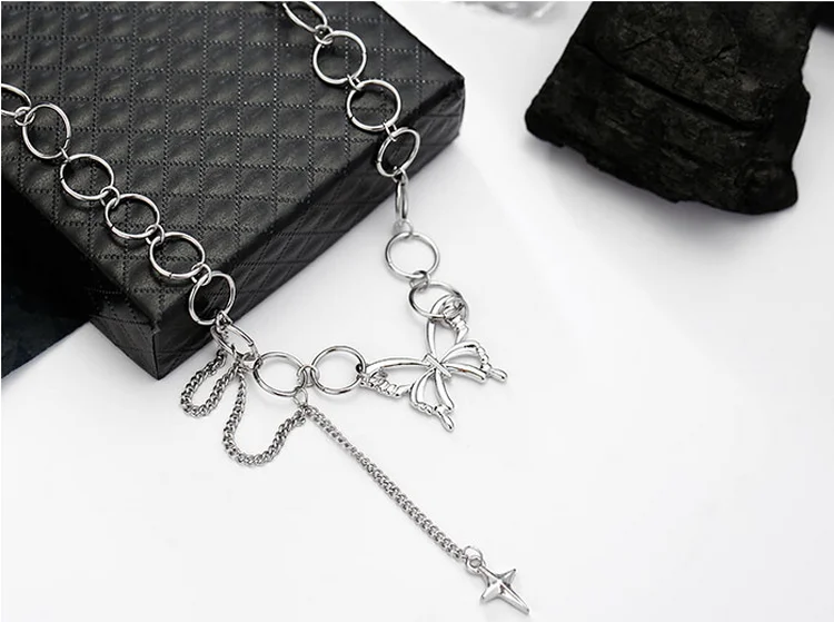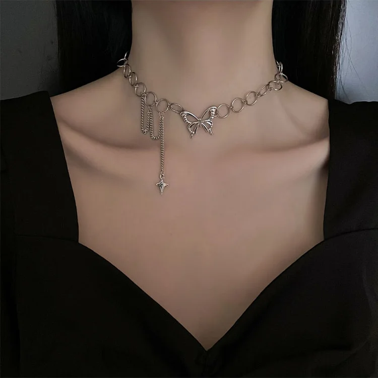 Stainless Steel Necklace for Women Butterfly Choker Punk Style Charms Designer Collares Gothic Hip Hop Chain Jewelry