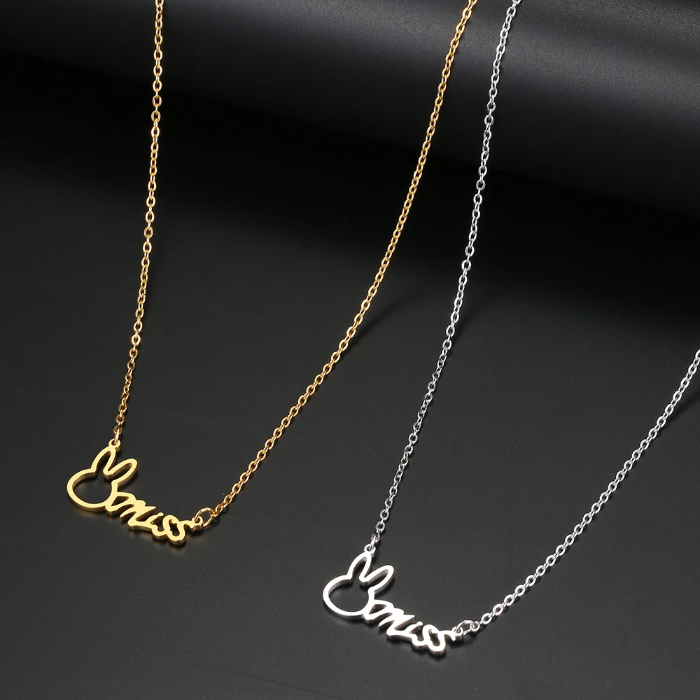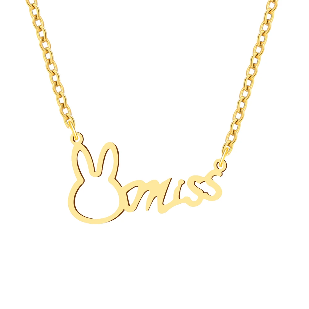 Stainless Steel Necklaces Cute Rabbit Letters Miss Pendant Chain Necklace For Women Jewelry Wedding Party Girls Gifts