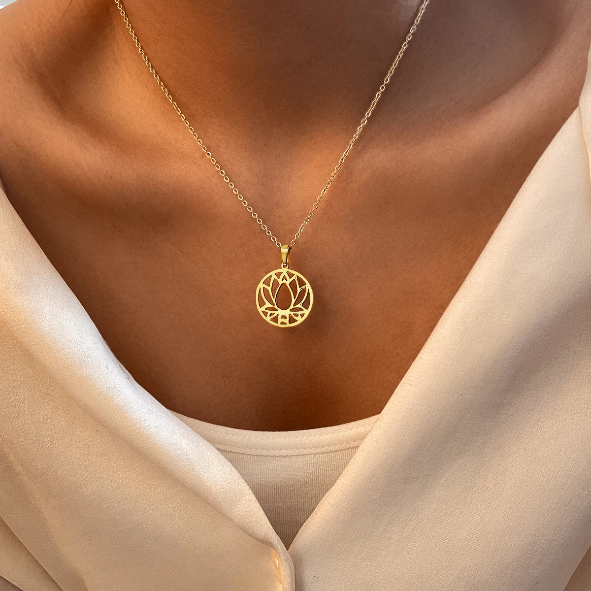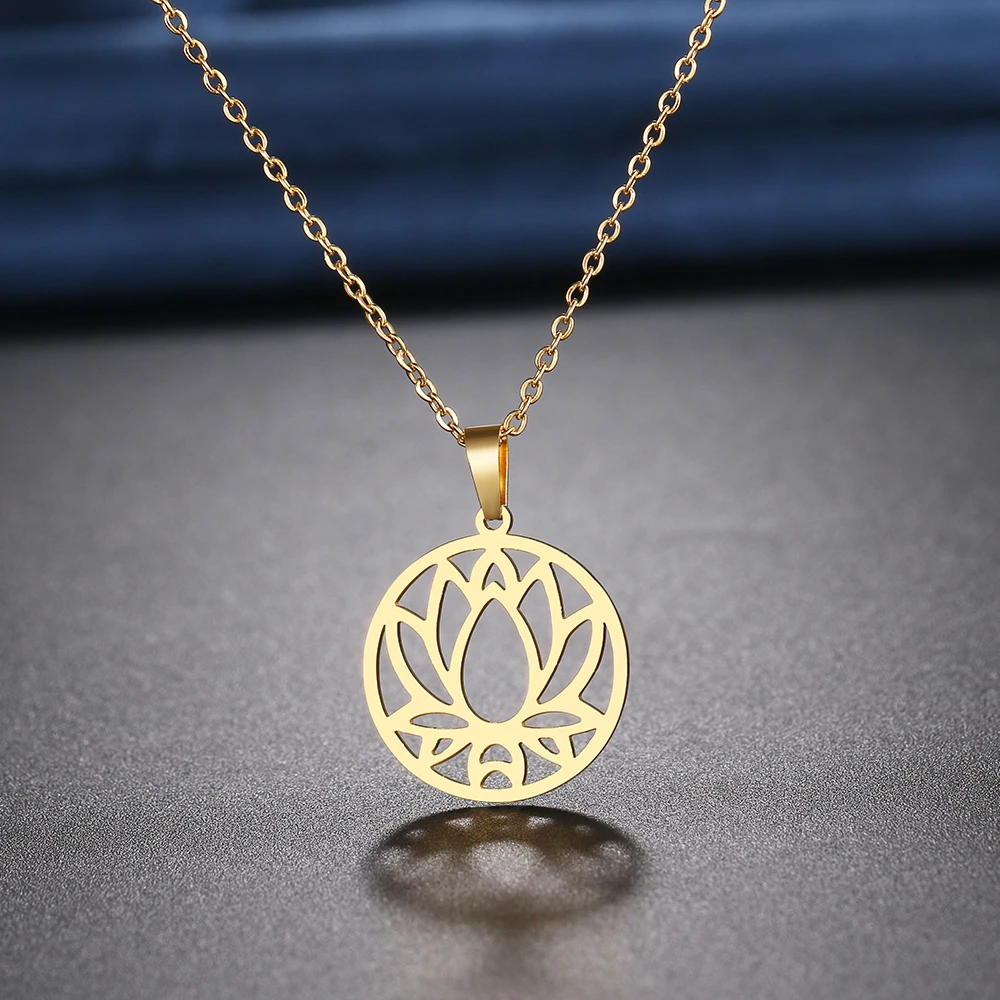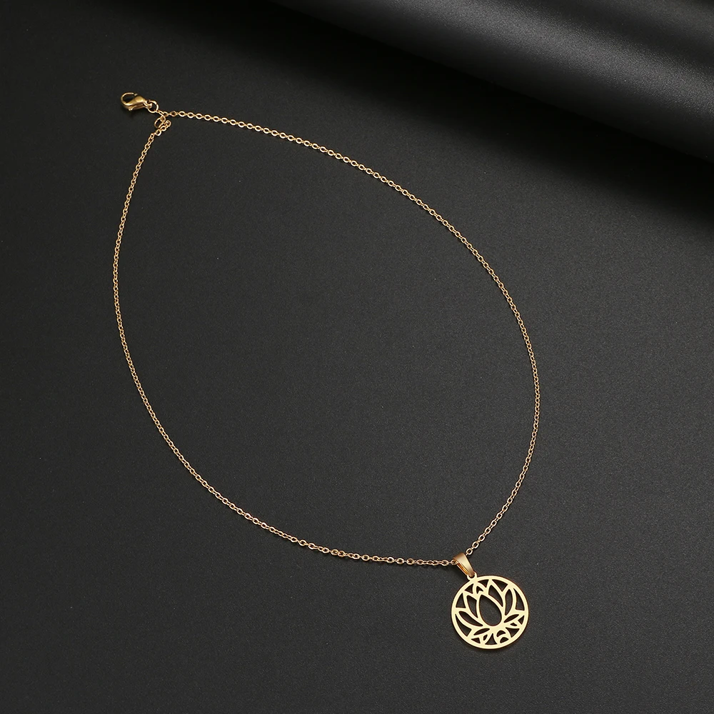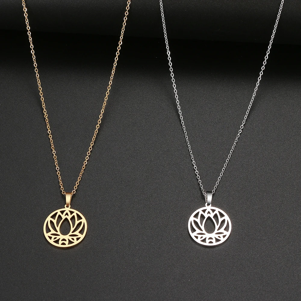 Stainless Steel Necklaces Large Round Lotus Pendants Chain Choker Jewellery Necklace For Women Jewelry Party Gifts NEW
